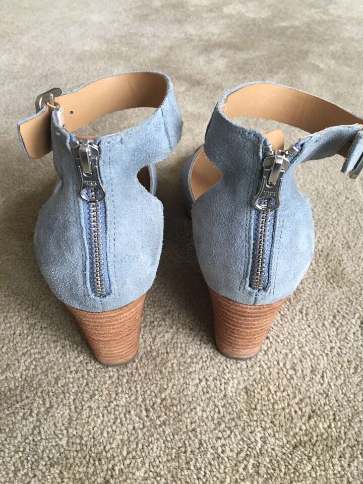 Kork-Ease Ganzania Light Blue Suede Sandals, women’s size 9/EU 40.5. Genuine leather, cushioned footbed, rubber outsole, steel shank, 3” heel. Adjustable buckle on ankle strap, zipper heel, open toe. Excellent condition, like new. Text only. Cash or Venmo.