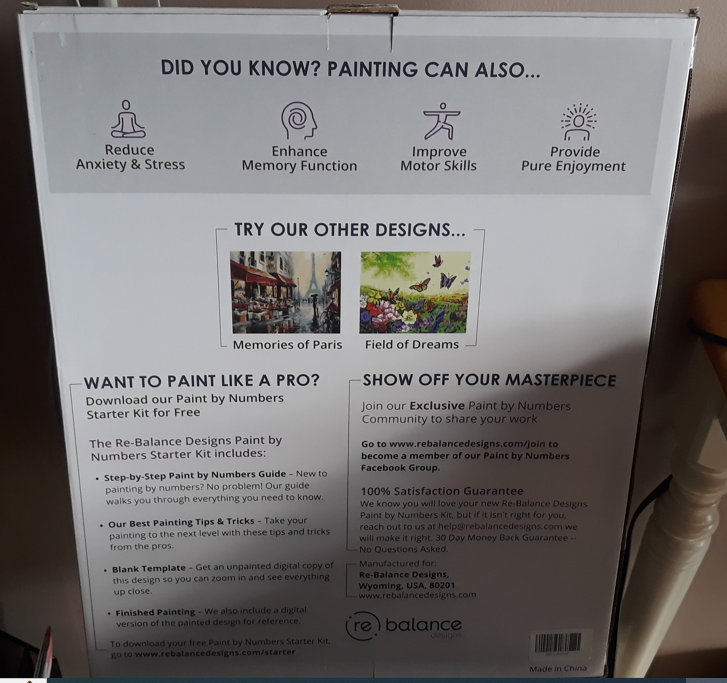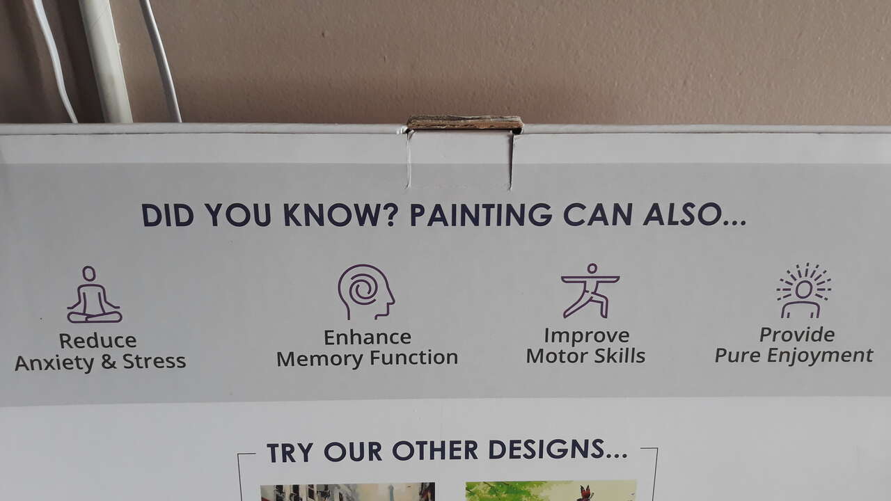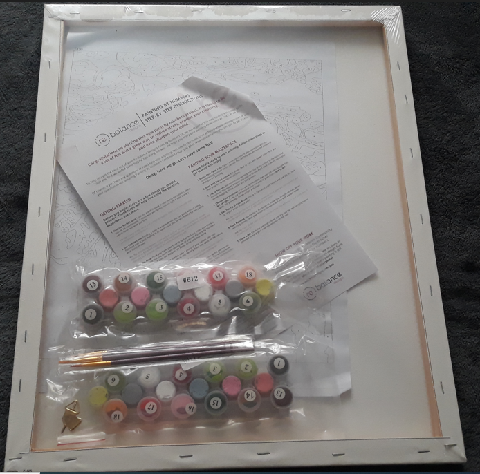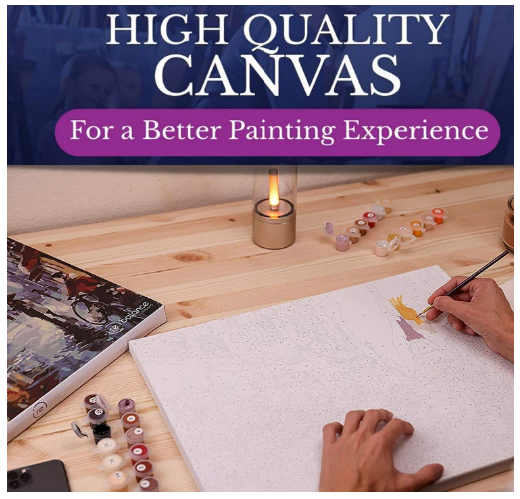 Included Components: Acrylic Paint Pots, 3 Paint Brushes, Wooden Framed Canvas, Wall Hanger, Painting Guide.