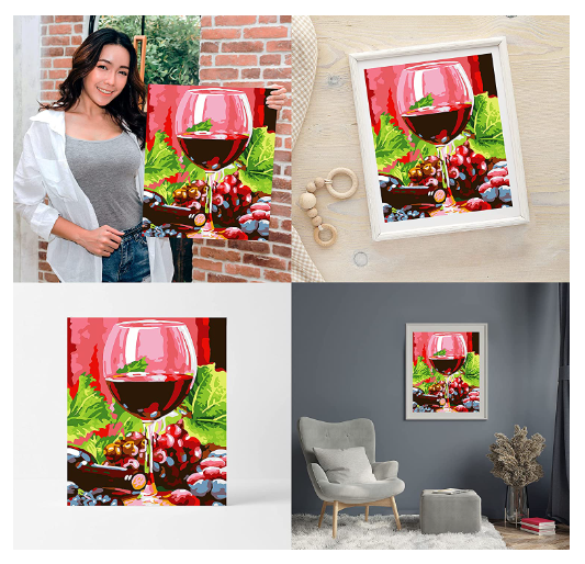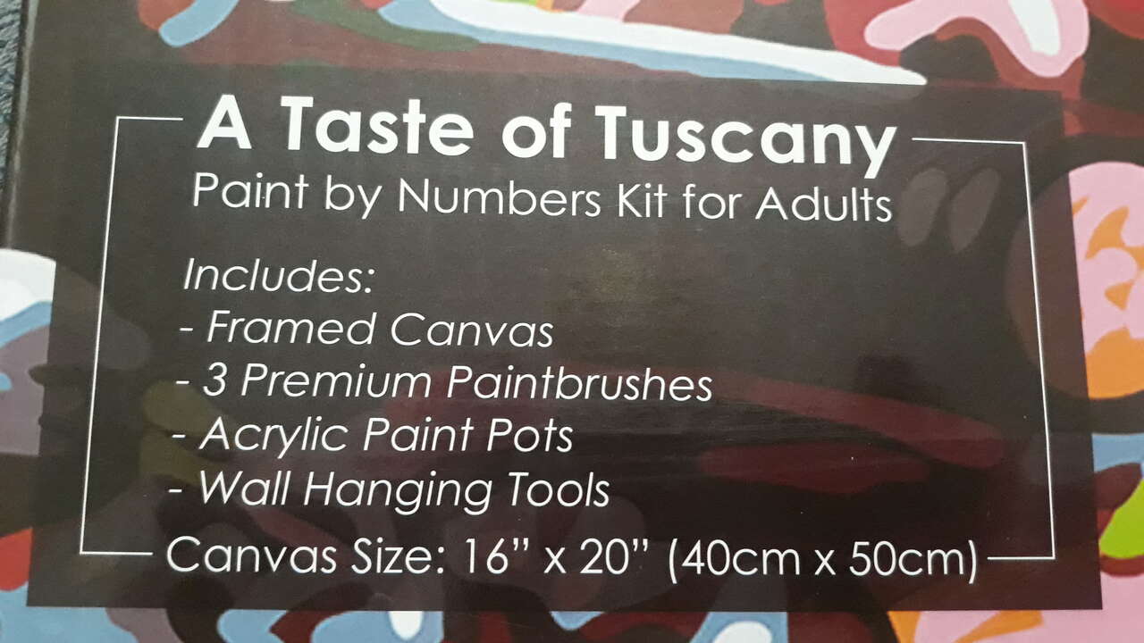 VenmoPaint by Numbers kit for Adults Canvas Framed Wine Glass in Italy. A Taste of Tuscany. The vivid reddish hues with accents of purples and greens will transport you into a quaint Tuscan villa, sipping a glass of wine.