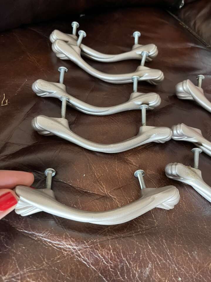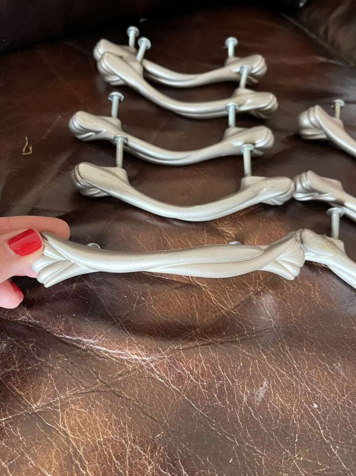 Vintage drawer pull handles silver colored 5 L holes 3 inches (8)