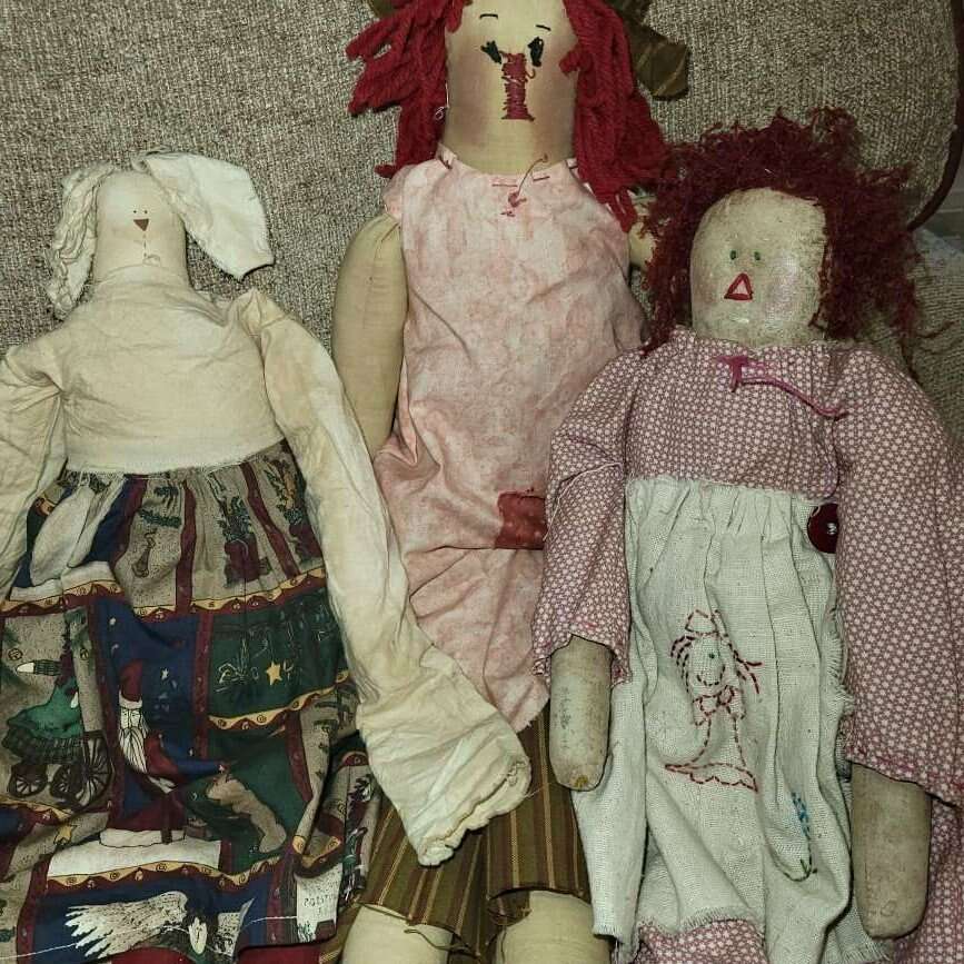 3 endearing, old-fashioned rag dolls. Smallest is 19", 21" & tallest is 24". Very detailed & lovable?. Great for display or for your favorite person. :) Smoke free home. Call or text. OBO.