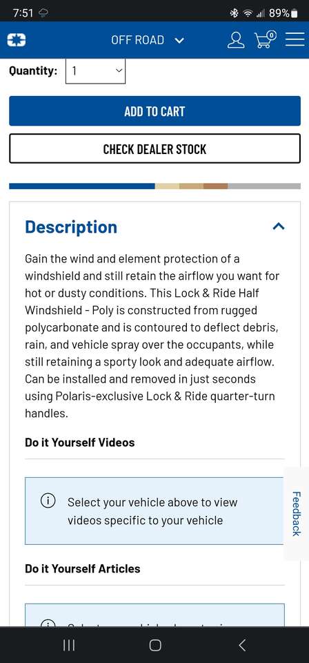 Gain the wind and element protection of a windshield and still retain the airflow you want for hot or dusty conditions. This Lock & Ride Half Windshield - Poly is constructed from rugged polycarbonate and is contoured to deflect debris, rain, and vehicle spray over the occupants, while still retaining a sporty look and adequate airflow. Can be installed and removed in just seconds using Polaris-exclusive Lock & Ride quarter-turn handles.