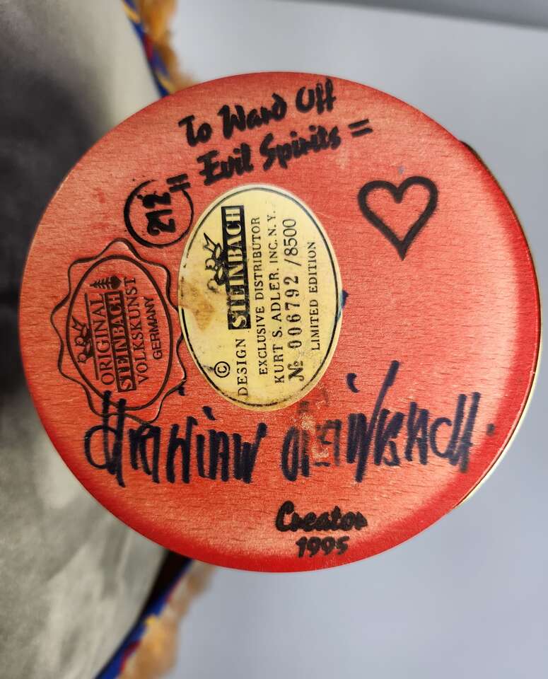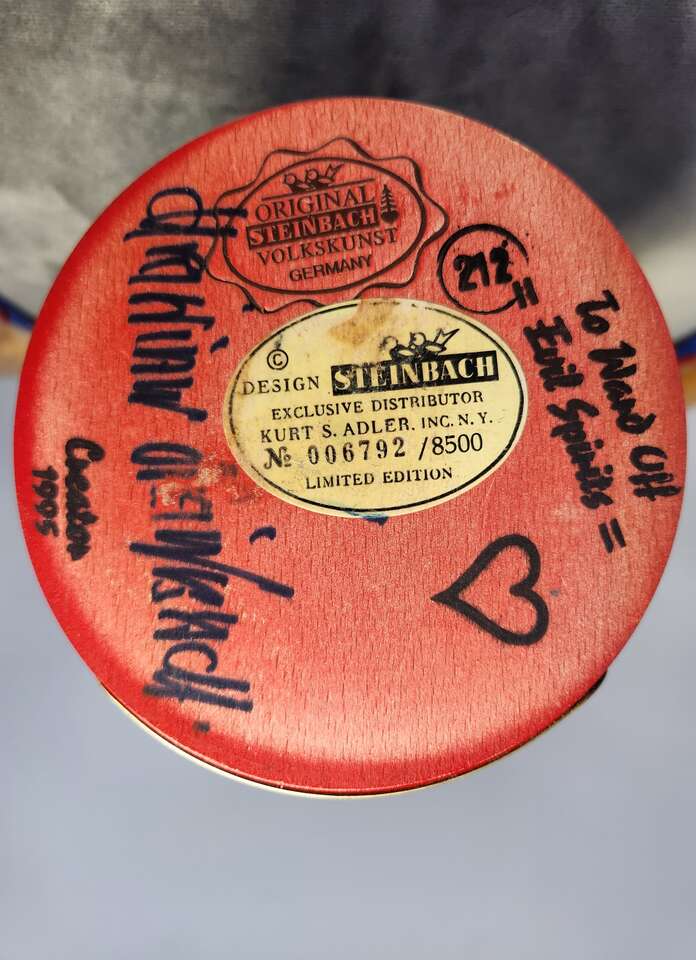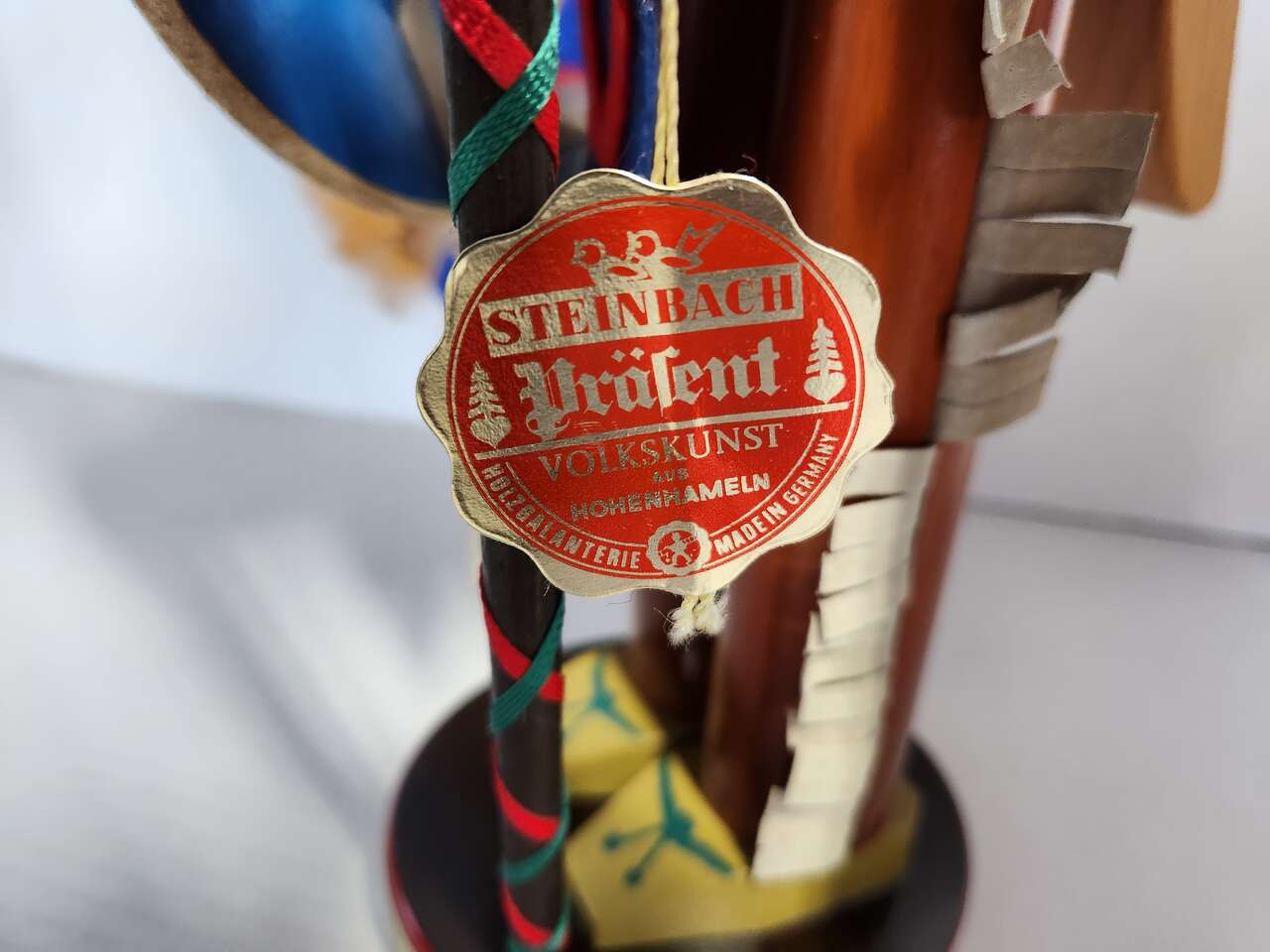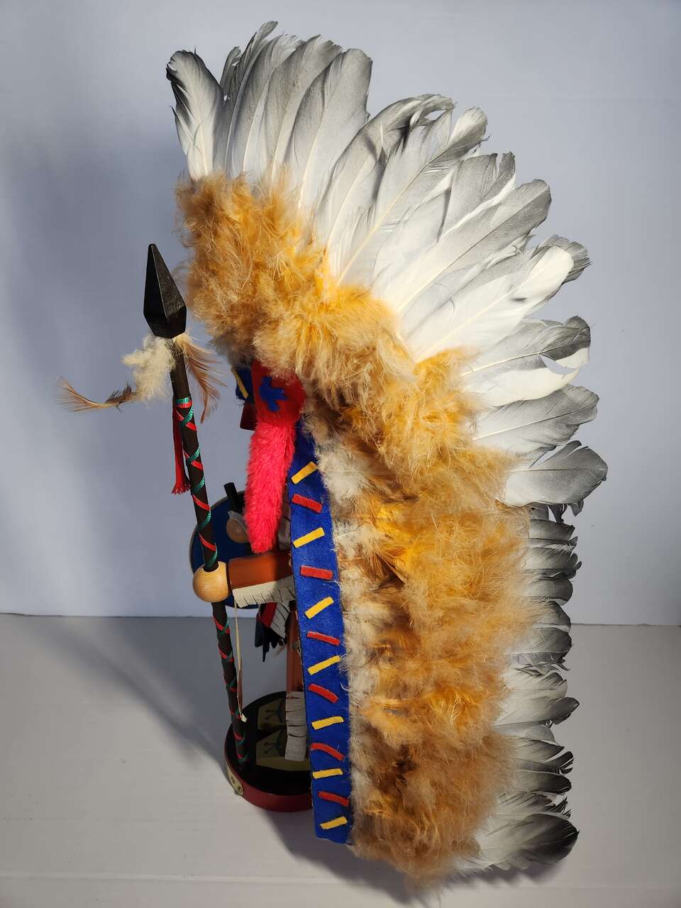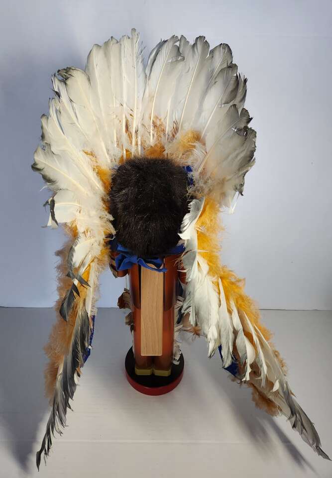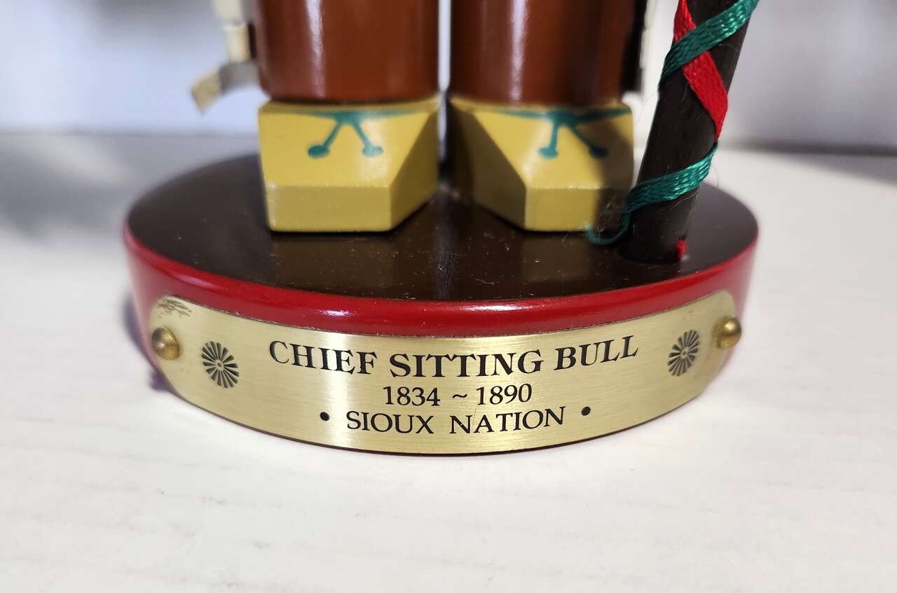 Indian Chief Sitting Bull Nutcracker Germany Steinbach This beautiful nutcracker is from the Famous Chieftains Series. This nutcracker is of Chief Sitting Bull (1834-1890) of the Sioux Nation. Chief Sitting Bull is wearing a large feather headdress, which can be removed. He is holding a shield, tomahawk and a spear. Nutcracker is Limited Edition of 8500 pieces. This nutcracker was designed exclusively for Kurt S. Adler Inc. and was produced by the renowned Steinbach Factory in Germany.
