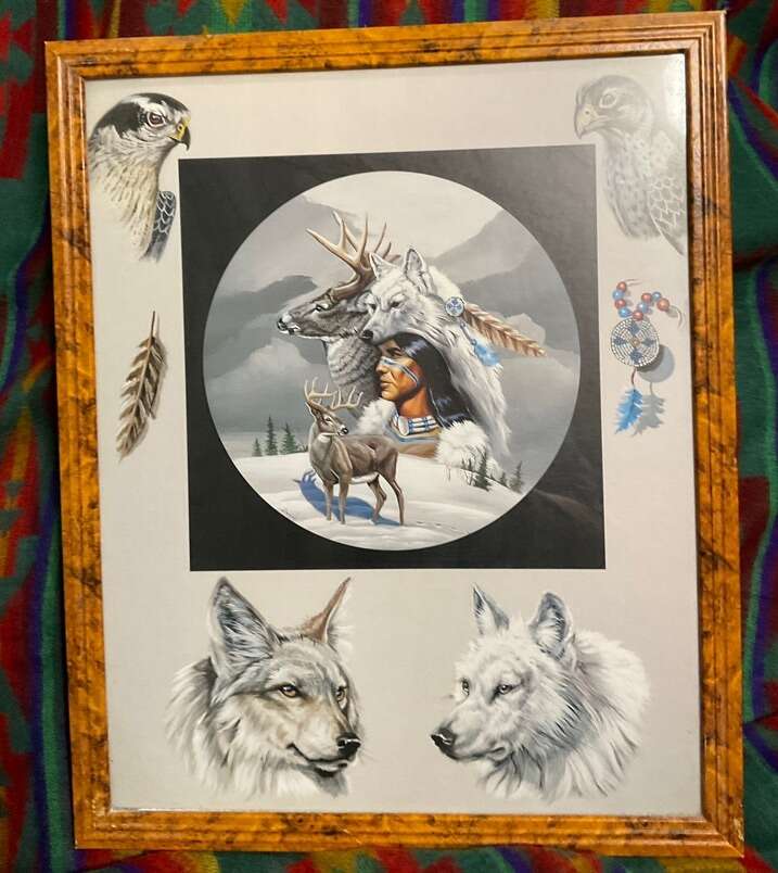 1996 Gary Ampel Native American Print Wolves/Falcons. Beautiful print. Please take a look at my other ads.