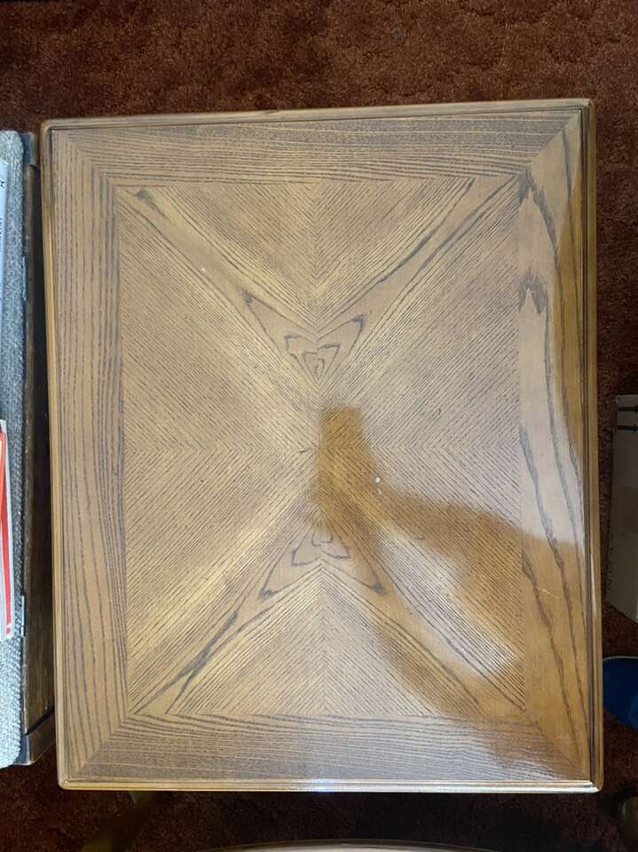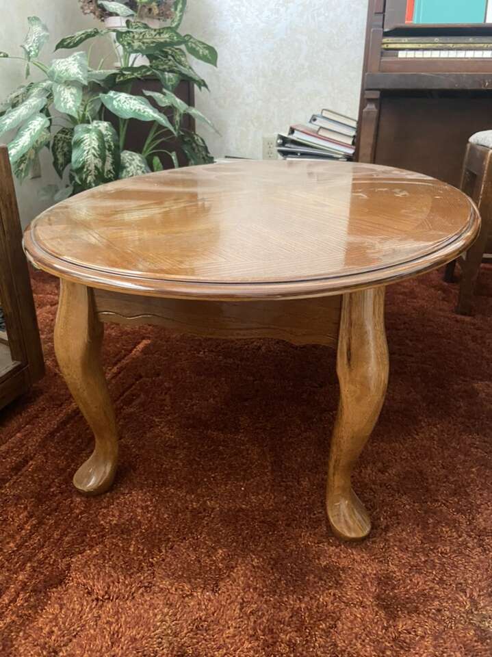 VenmoWood coffee table and matching lamp table. Coffee table is 45x25x15. Lamp table is 26x21x20. The lamp table has a drawer. Like new condition.