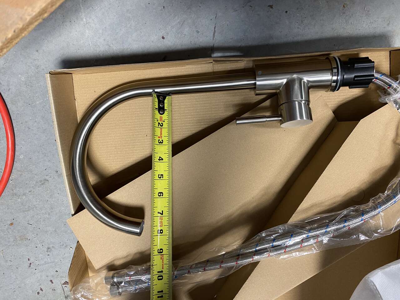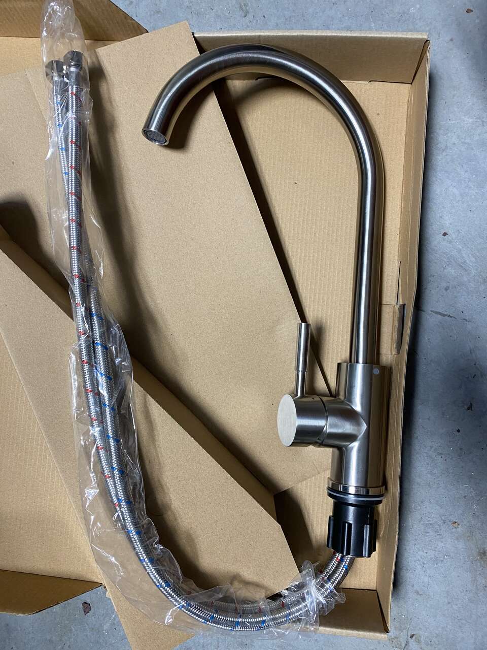 Brand new single hole Trinity faucet, brushed stainless finish. I have 4 of these faucets available, all new in original boxes, never used. High arch faucets great for wet bar sink, kitchen, laundry sink, etc.