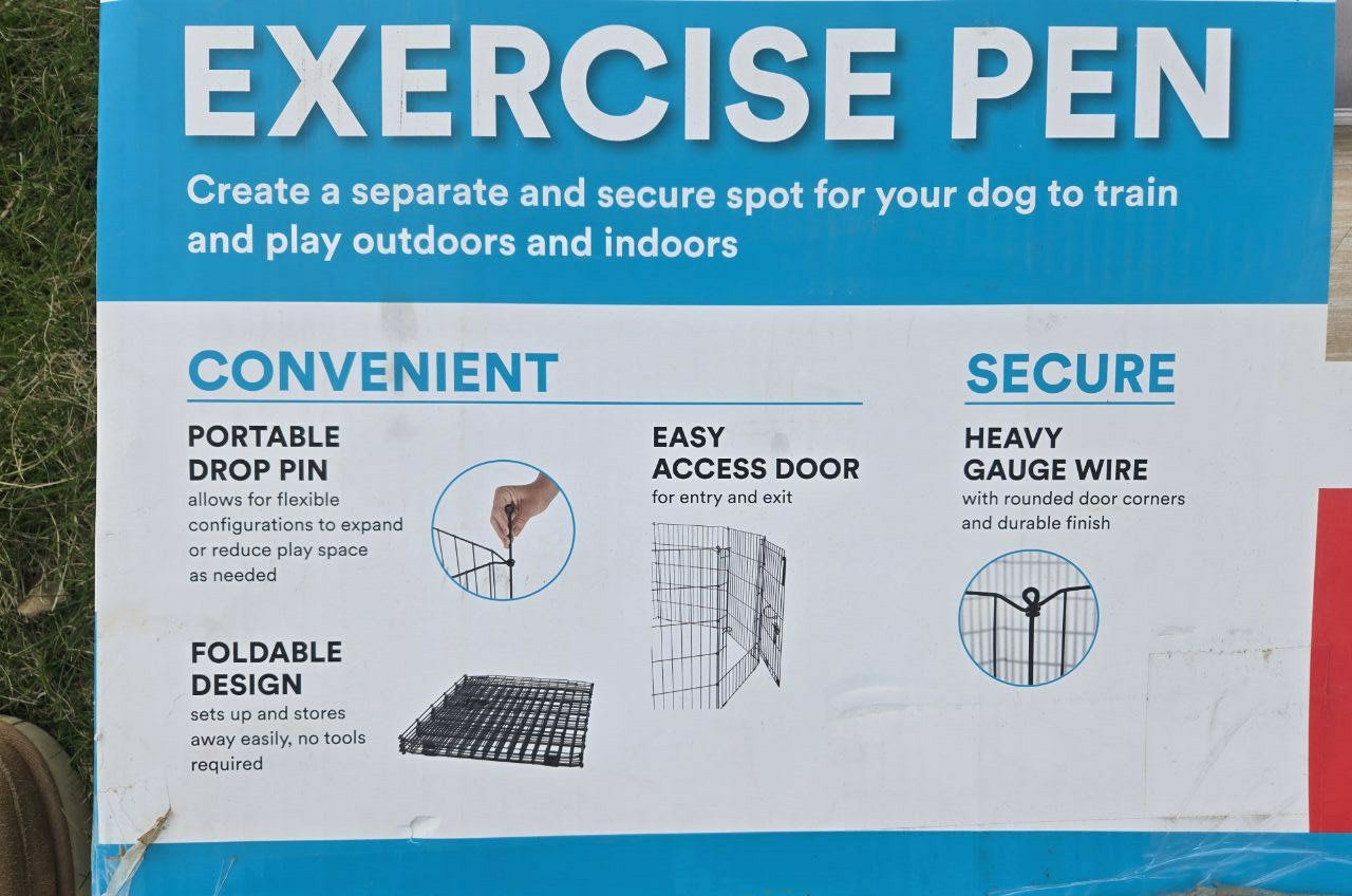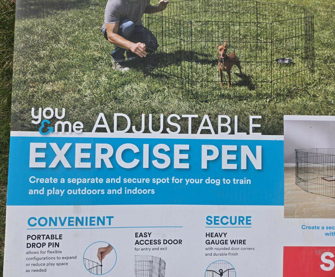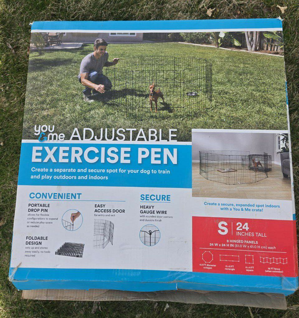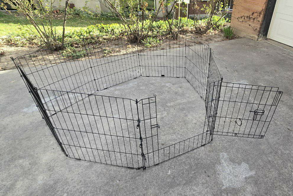 VenmoNice You&Me 8 Panel exercise playpen for your pets. Enclosure has a door with easy locking clasps. Foldable and collapses flat when not using. Dimensions of each panel is 24" height x 24" length. Can be assembled in many ways to fit your space. Text please!