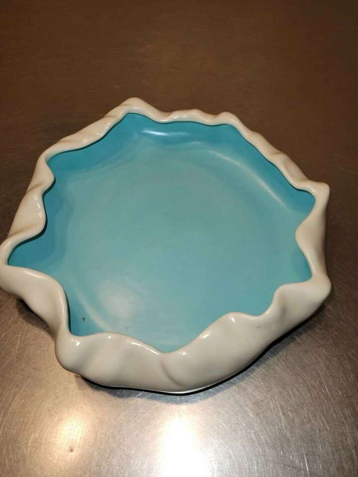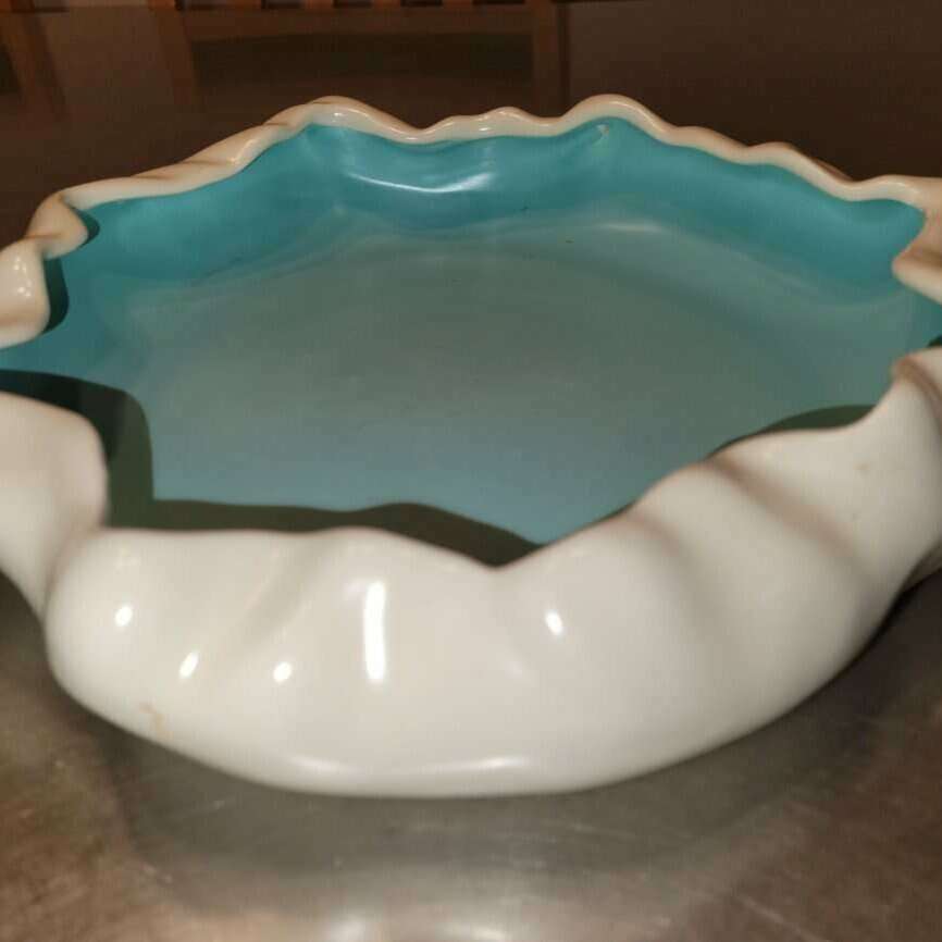Beautiful vintage 1940's Metlox 11" round X approx. 2" Deep art pottery. Excellent shape, smooth finish in aqua blue interior & cream/beige colored exterior. Such a classy look!. Great display piece. Made in USA. Smoke free home. Call or text.