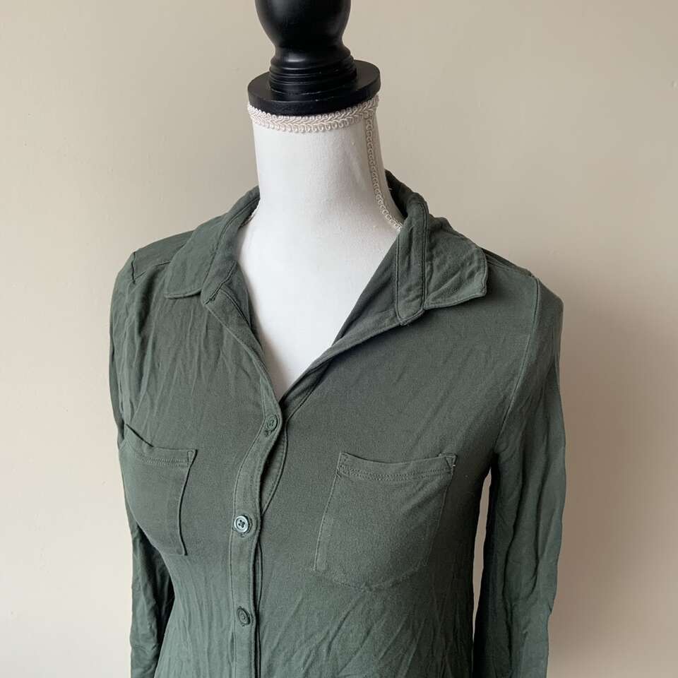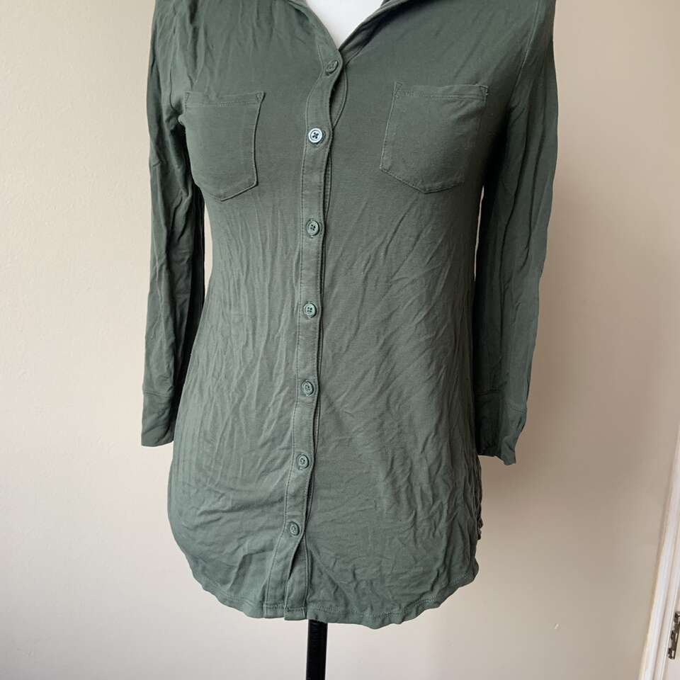 Merona Army Green 3/4 Length Button Shirt Size S 018010568 F16983830 Q4/16