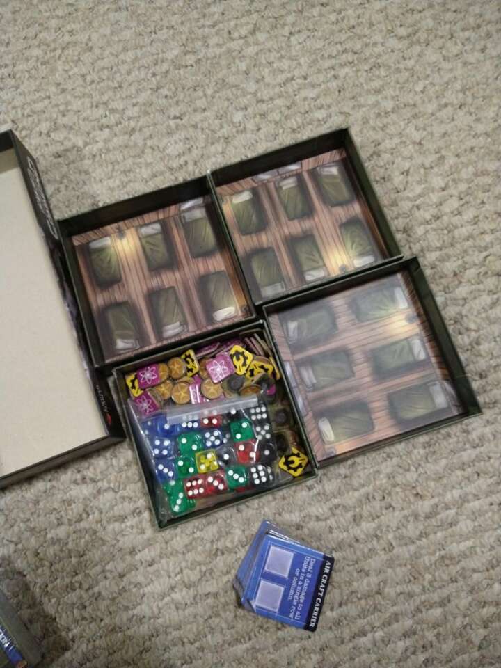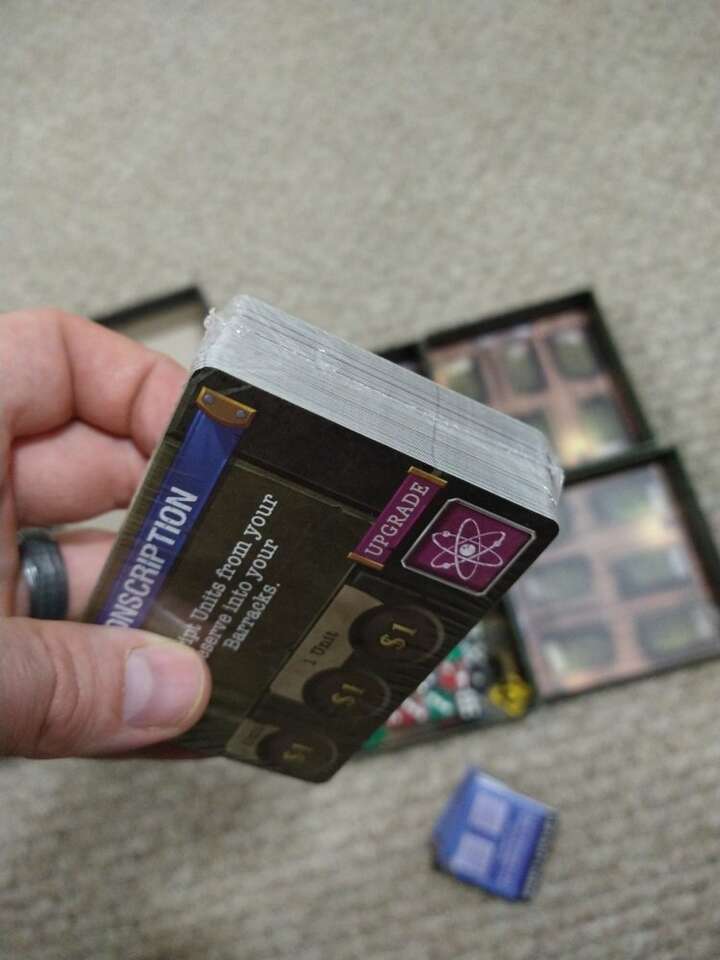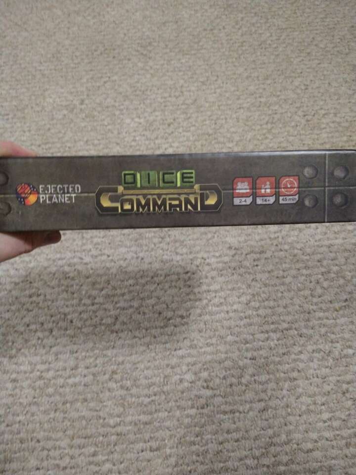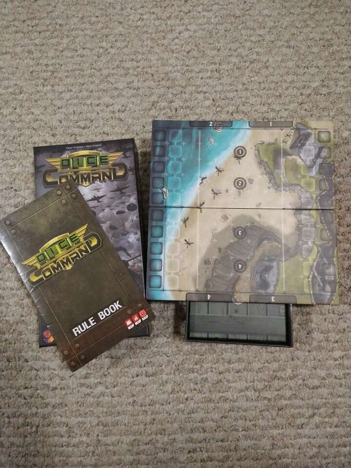 Dice Command the game. Opened but never played. Cards are still in shrinkwrap. 45 minute game for 2-4 players. From the box, "Dice Command is a semi-abstract tactical wargame for 2-4 players. In each game, players will go head-to-head in a tug of war battle. To fuel the war machine, players carefully build up their army and technology while simultaneously adjusting to their opponents on the battlefield. Deciding when to attack and when to defend can mean the difference between victory and defeat. With tight, lightning-fast gameplay and deep strategic choices, no two games of Dice Command will feel the same!"