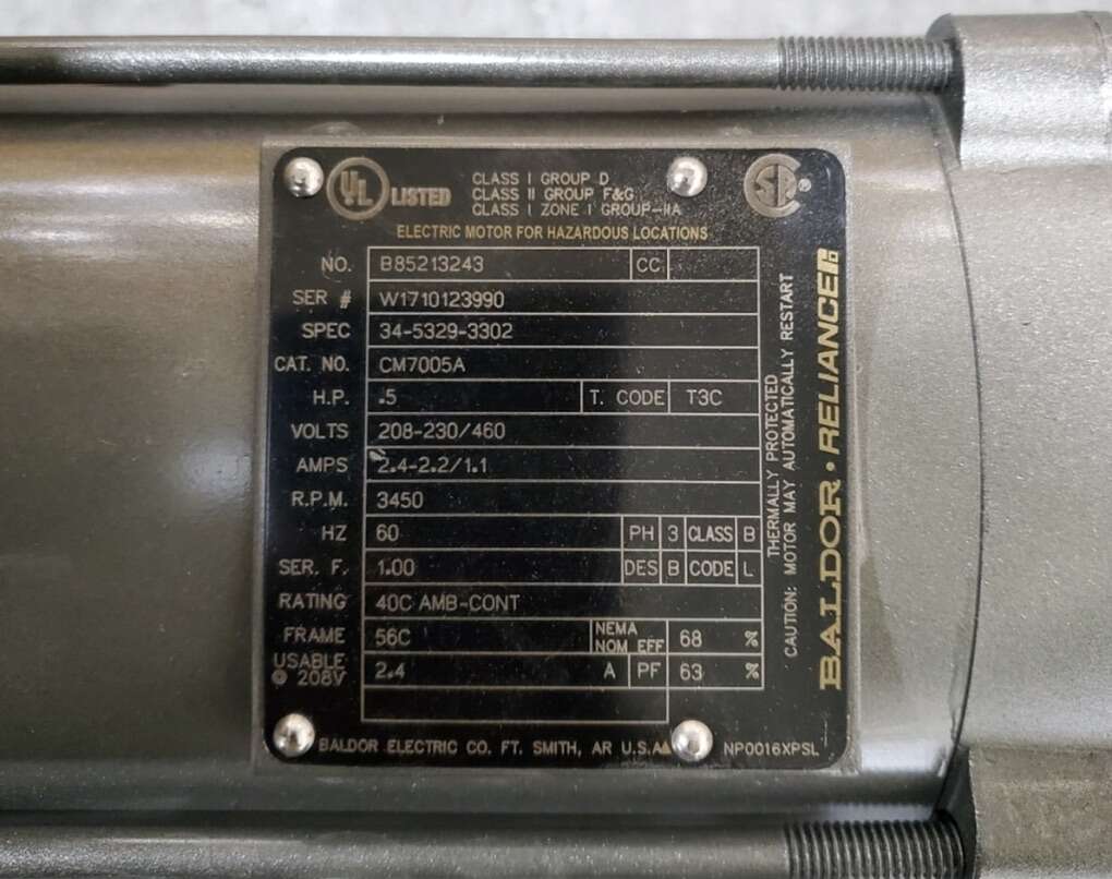 BALDOR CM7005A 3PH Electric Motor 1/2 HP 3450 RPM 56C Haz B85213239 34-5329-3302