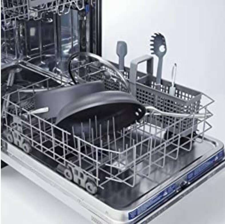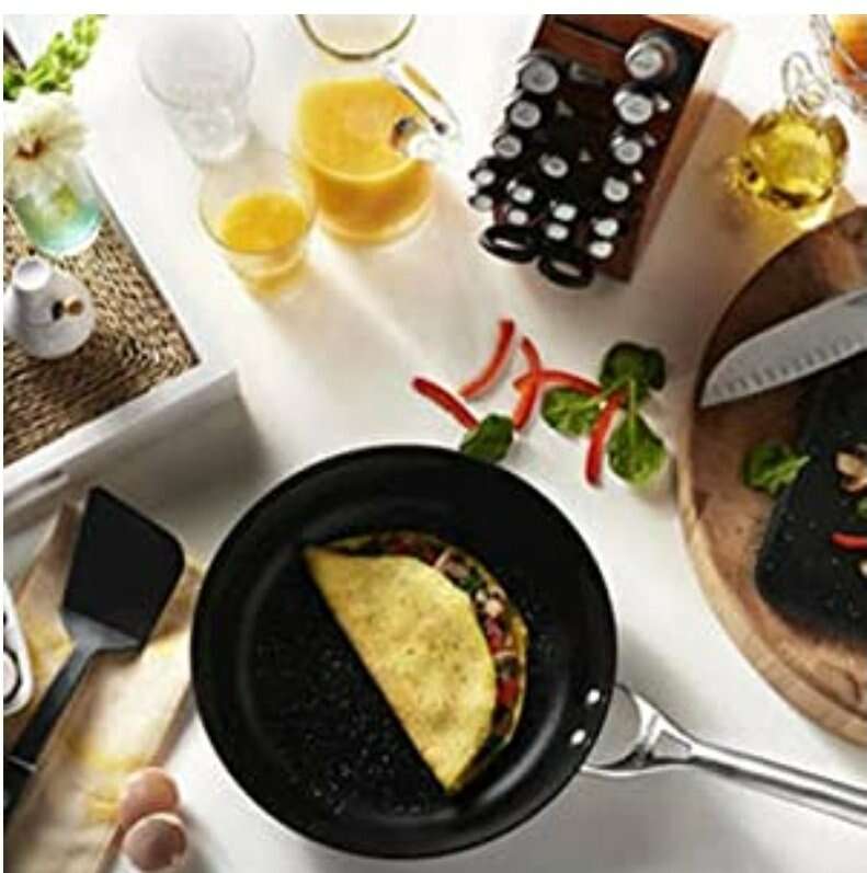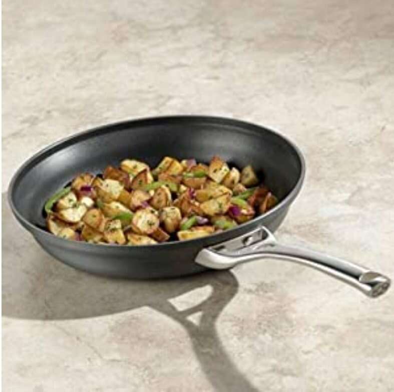 About this item Heavy gauge aluminum construction ensures even heating and is hard anodized for durability; It also makes it dishwasher safe Interior includes 3 layers of nonstick coating 2 layers provide durability and the third layer offers easy release performance The long, brushed stainless steel handles are designed to stay cool on the stovetop; Pans and covers are also oven safe, making it ideal for finishing a gourmet dish Flat, wide bottoms heat evenly and provide plenty of room for cooking; The sloped sides are designed for easy tossing and rolling The nonstick surface means you can cook healthier using less fat, with effortless cleanup; Comes with Calphalon's full lifetime warranty