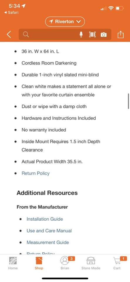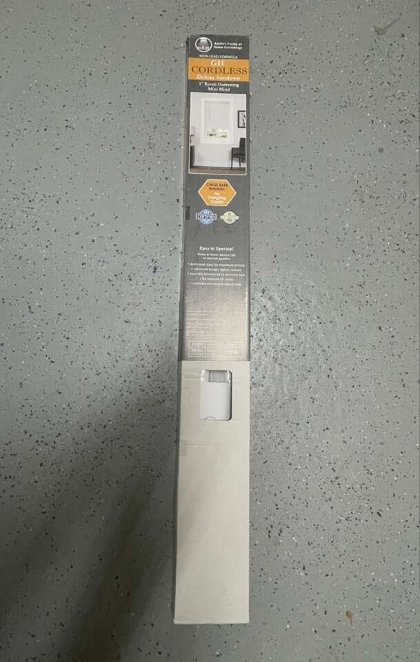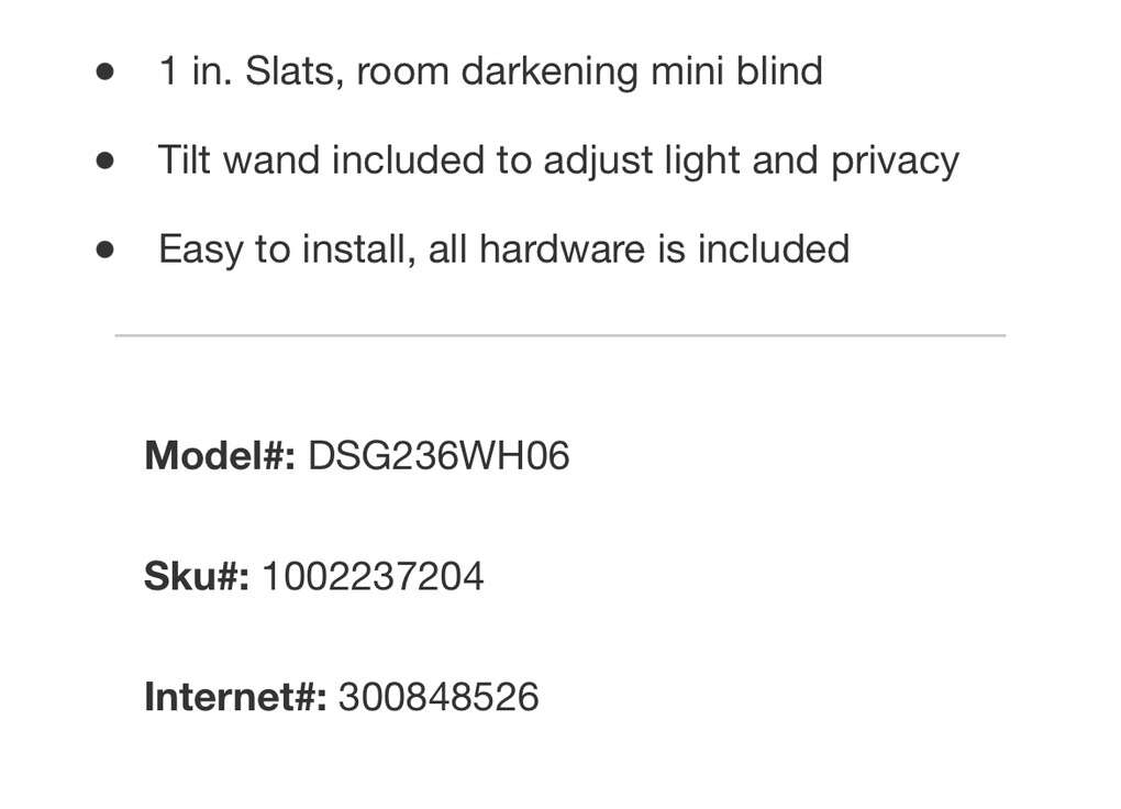 Description- 1” Room darkening mini blinds. 36 inches wide by 64 inches tall. See photos for more product information and specifications.