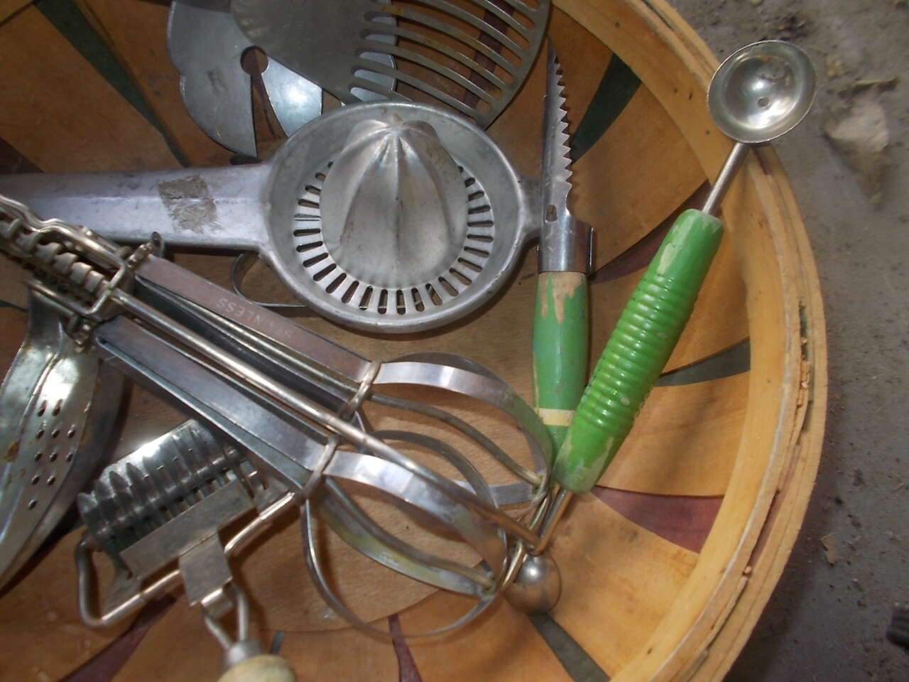 Basket full of vintage Utensils. If interested please phone 801-823-7198 and ask for Laura. Thanks