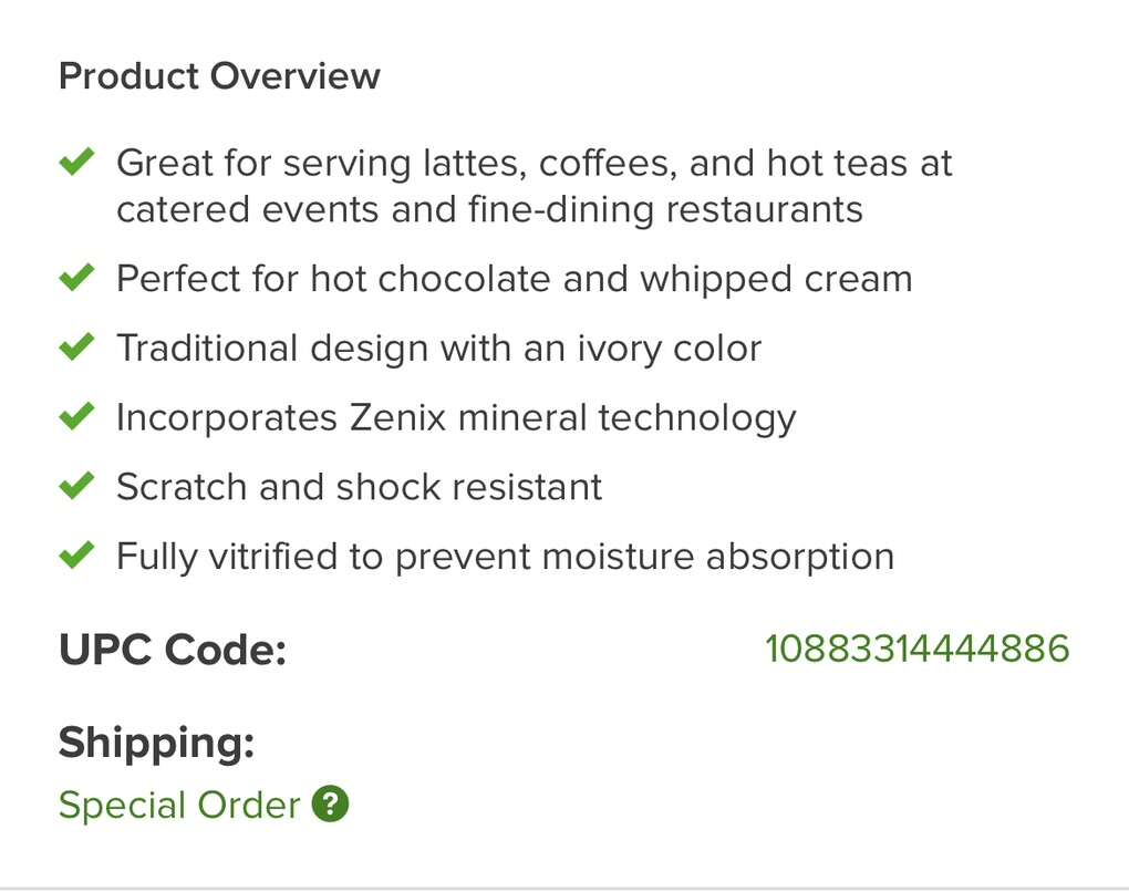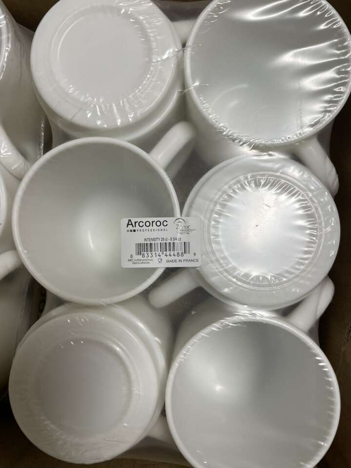 Description- CASE OF 35 (case of 36 with one broken mug) Zenix Intensity 9.75 ounce mugs. Made in France. See photos for more product information and specifications.