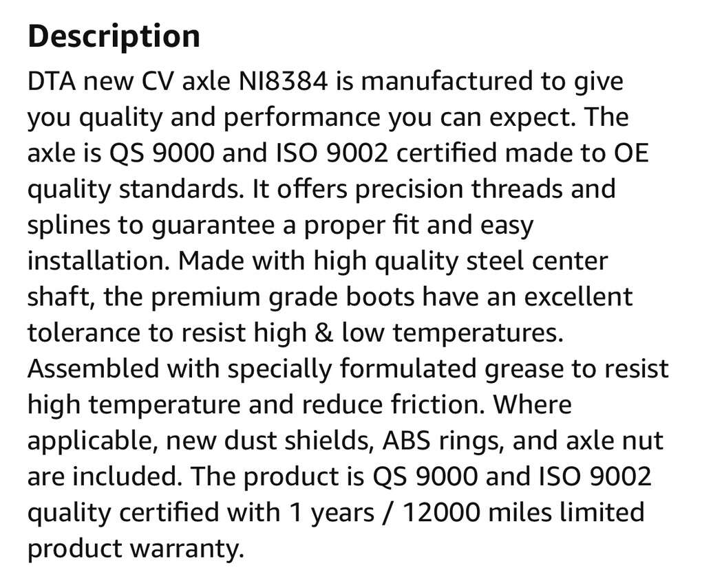 Description- 2-PACK of constant velocity (CV) axles for 2013-2018 Nissan Sentra. See photos for more product information and specifications. Currently sells at Amazon for $167.10 ($83.55 each) plus sales tax. SAVE $50 HERE! How do we sell BRAND NEW PRODUCTS at such low prices? We have a contract with a product liquidation company and are able to purchase surplus, overstock and unused returned products by the truck load at a volume discount. We then inspect every product and pass the savings on to our customers. Our inventory turns fast with some products selling out and new products coming in regularly. Our products range from every day items such as home furnishings, decorating, sporting goods, automotive, industrial, etc. to one of a kind and unique items. Click on the “More From This Seller” link to see our complete current inventory. We offer an additional discount to customers who purchase multiple products at the same time. Delivery is available from Salt Lake City to Provo for an additional $50 fee, regardless of the number of items you purchase. We accept cash and Venmo as payment. All items are first come first served but we are happy to hold an item for you with a full pre-payment via Venmo if you’d like to purchase an item but can’t pick it up until later in the day or week. Although we do inspect every item to the best of our abilities prior to listing it, we do HIGHLY suggest that you COMPLETELY inspect your purchase prior to leaving as all products are sold AS IS and are NON-RETURNABLE.