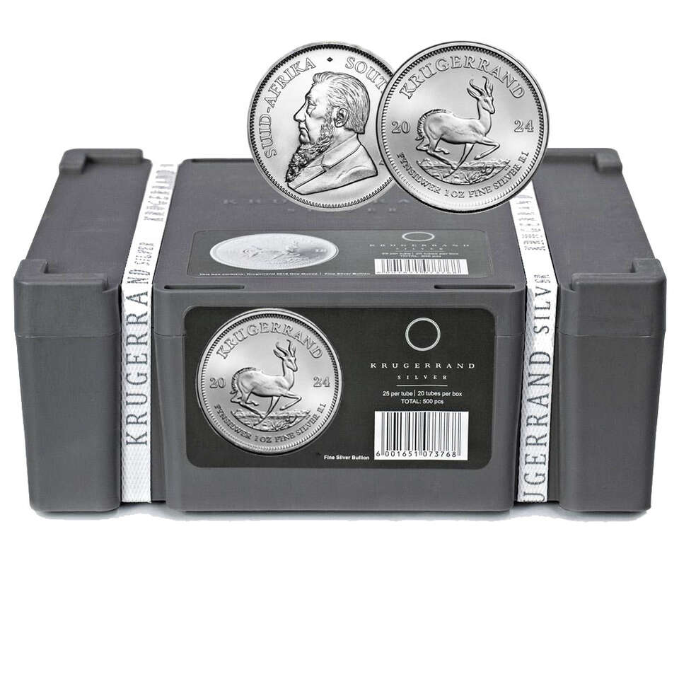 2025 Silver Krugerrand. Sold by the tube of 25. Straight from the Mint. Never opened, never touched and has never been pre-owned. Mint Sealed Monster Box of 500 available