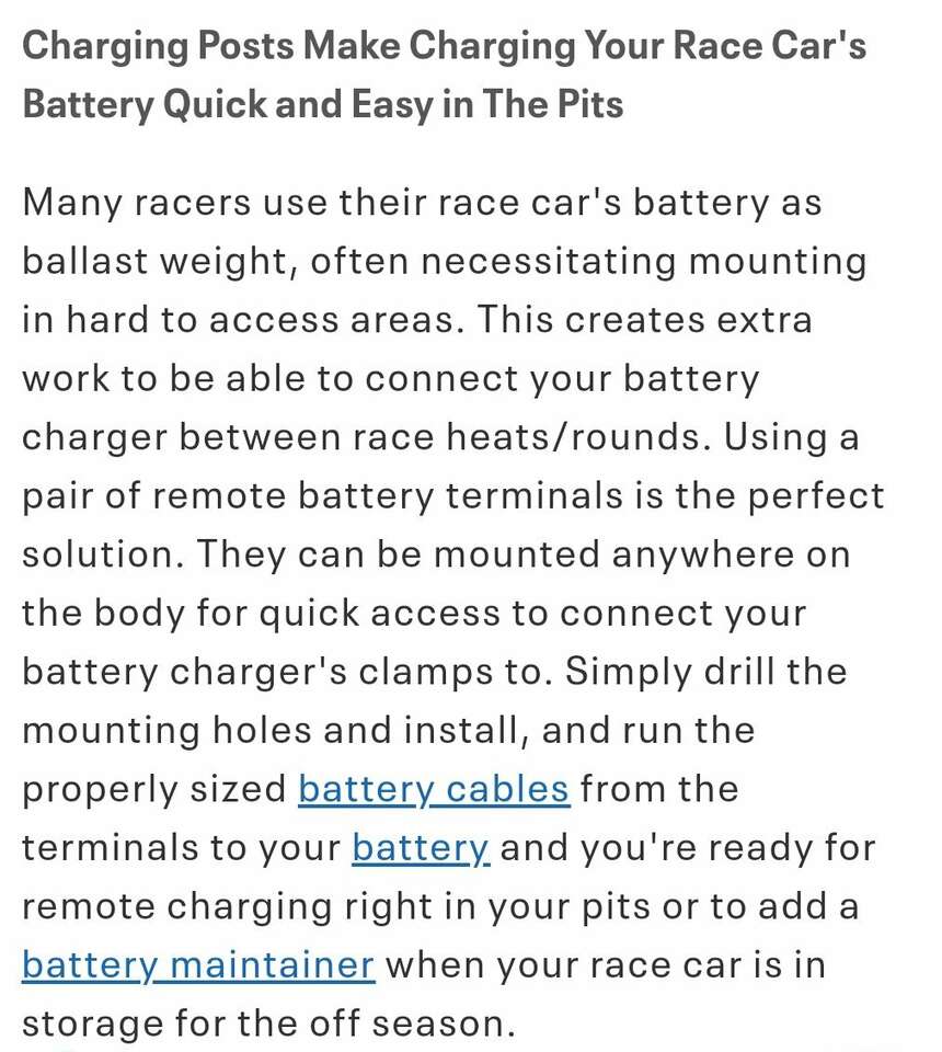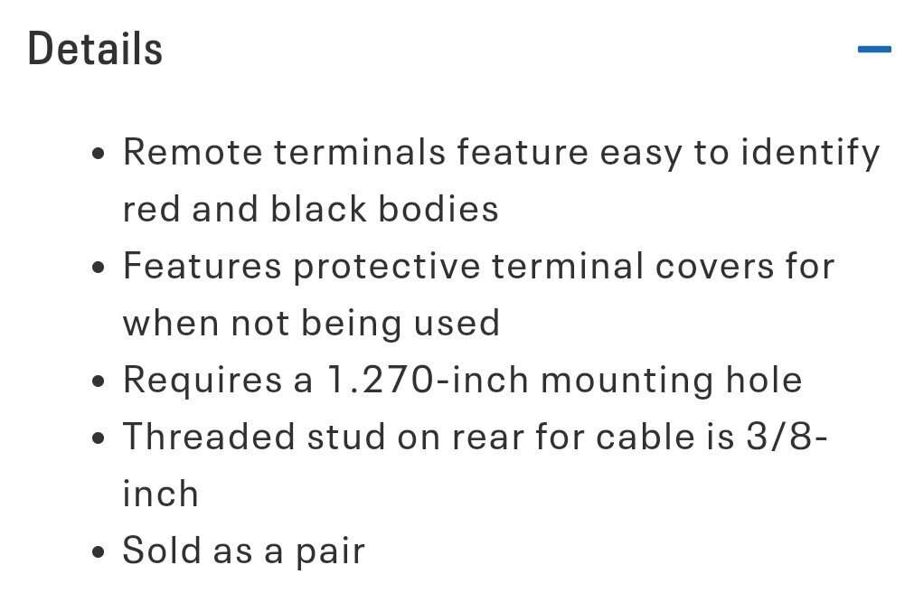 • Remote Mount Battery Charge Posts - Charger Jumper Terminals