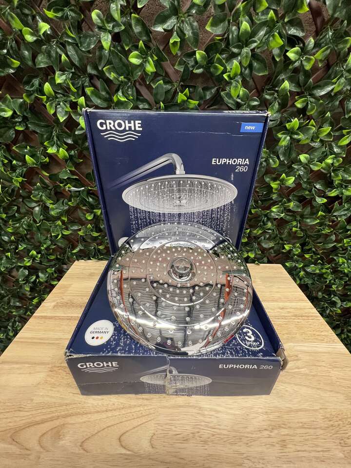 MSRP: $187 GROHE 10 in. Dia Rotating ball joint 15 1/2 in. connection thread Inner WaterGuide for a longer life Minimum recommended pressure: 15 psi 1.75 GPM WaterSense