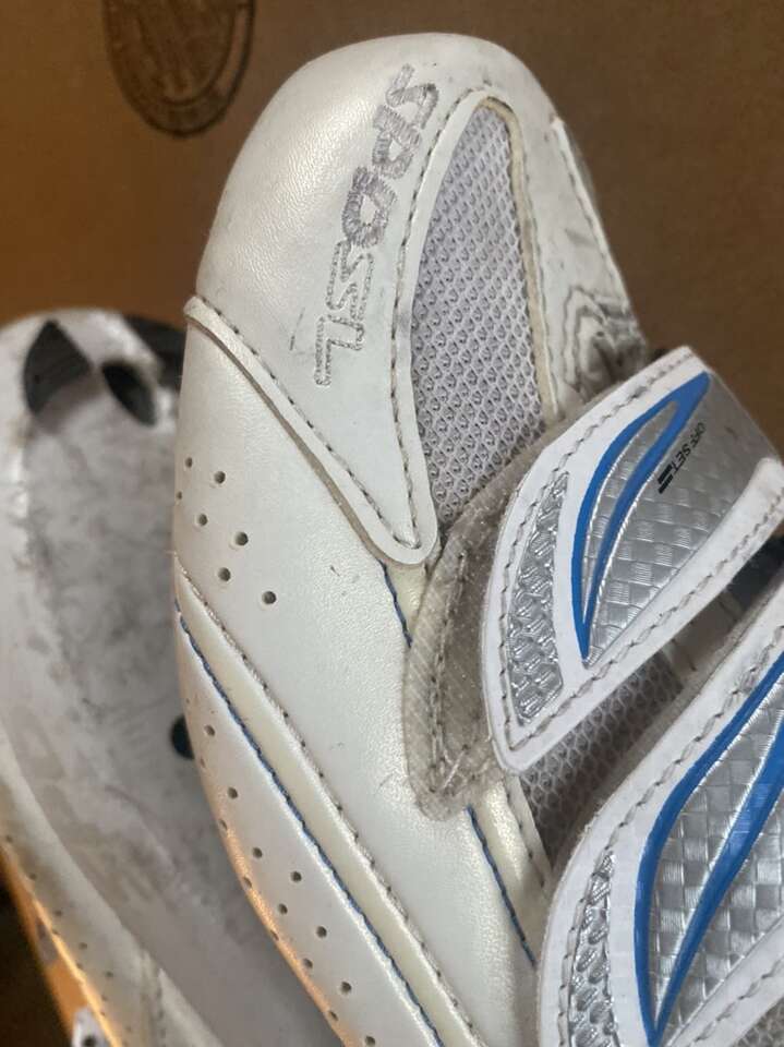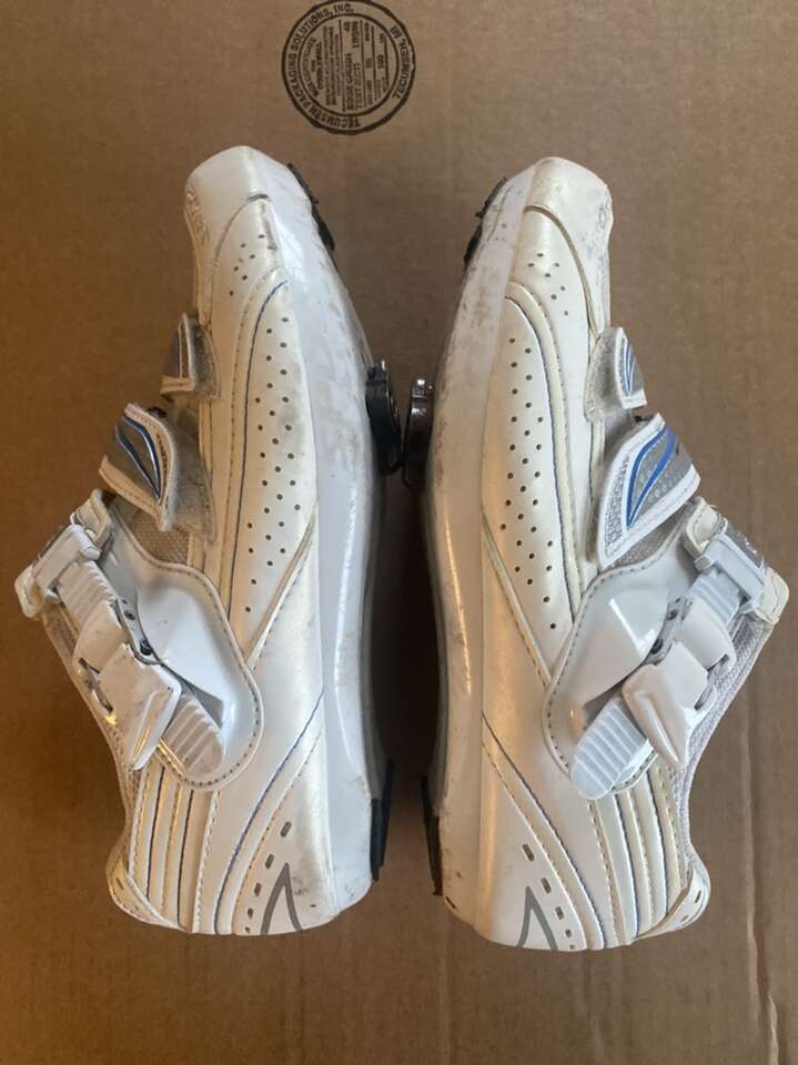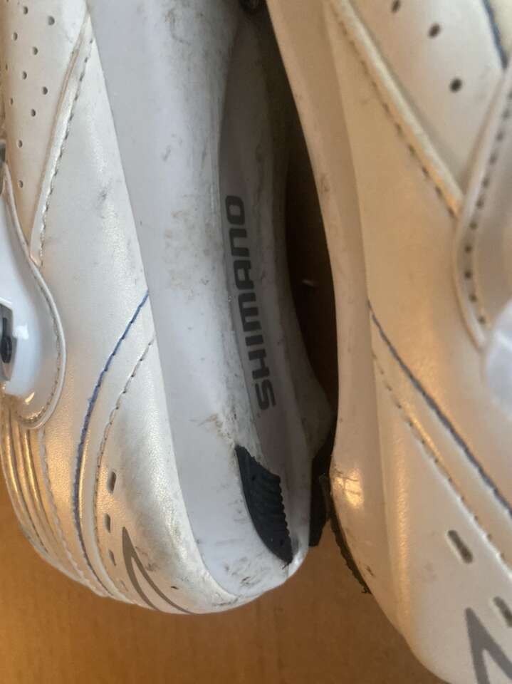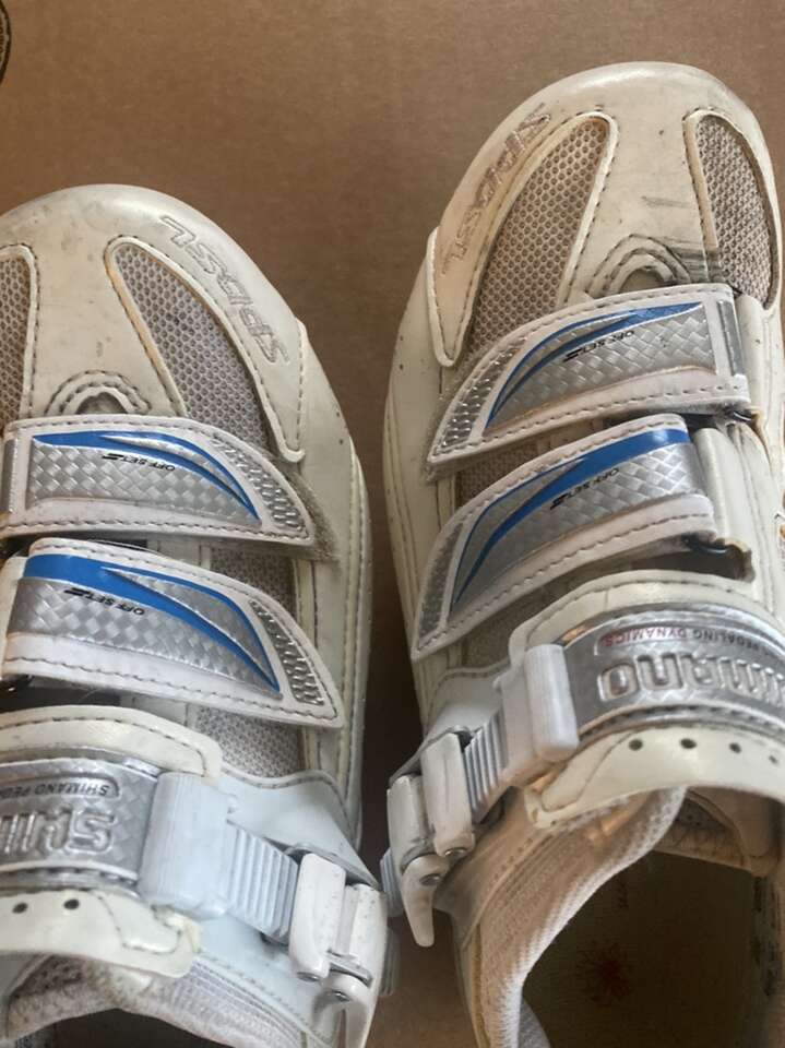 Very nice Shimano road does. Not much use but a few scuffs. Can take SPD cleats or the standard 3 bolt Look style road cleat.