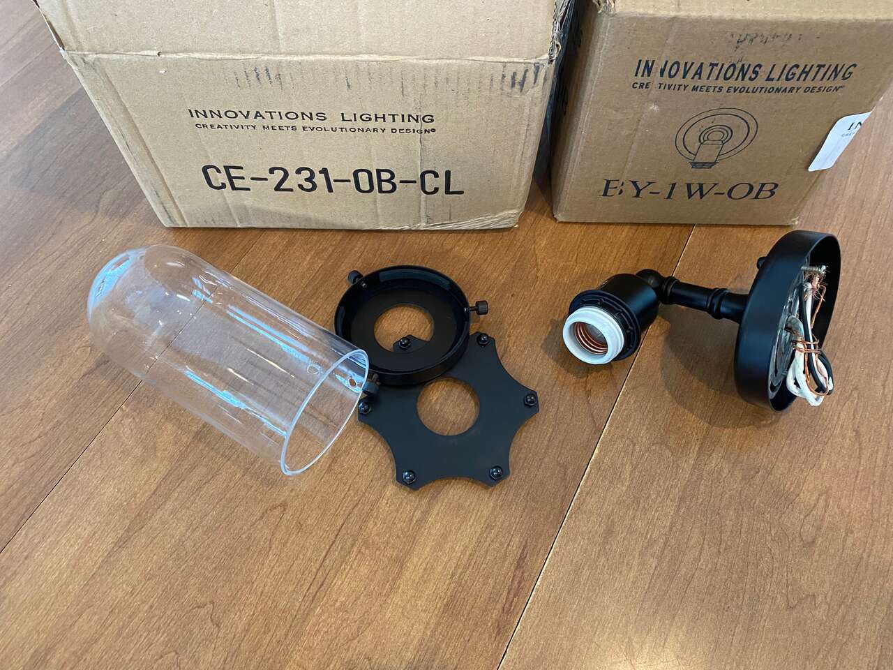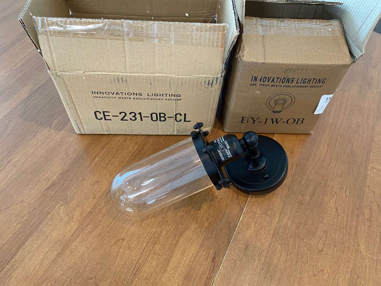 ApplePayCentri 1 Light Sconce (900-1W-OB-CE231-OB-CL)Centri 1 Light Sconce part of the Austere Collection Oiled Bronze with a clear glass cover. Item #: 900-1W-OB-CE231-OB-CL Dimensions: Height: 11.50 x Width: 4.50 2 available. $30 each or $50 for both. New in box. Cash or Venmo only.