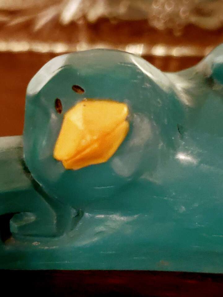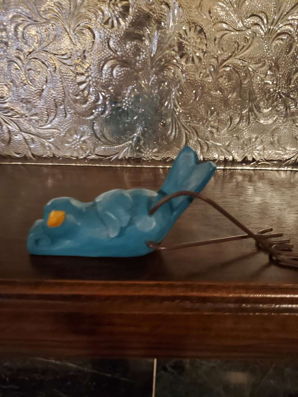 Vintage Russ Berri Shelf Sitter Reclining Blue Bird 'Tweet Along With Me' Figurine - (teal/aqua) 5" Long. Cash Only, No Codes