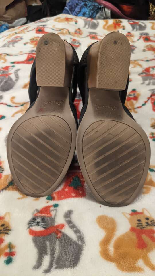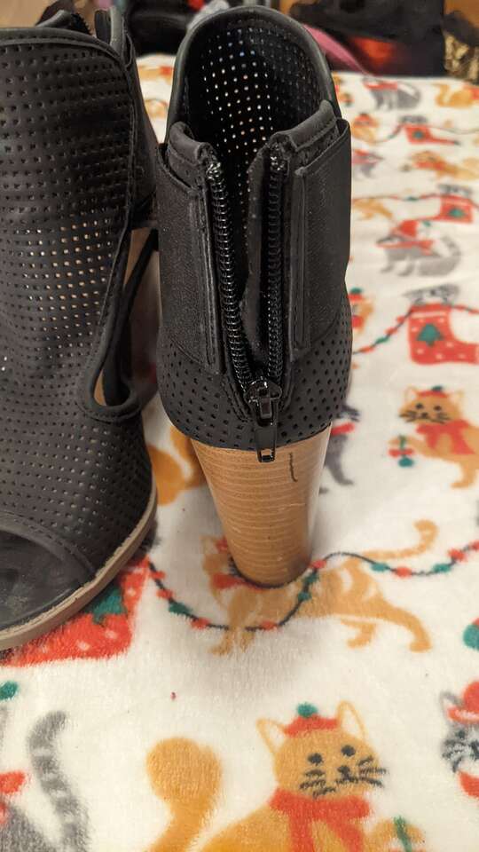 Qupid Black open toe Bootie with Chunky Heel Zipper on the back of heel for easy changing. 4 inch heel. Size 6 1/2. Text if interested. Asking $3.00