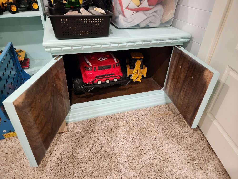 This is a cute blue coffee table or end table with storage. I need to measure it exactly but it is about 30 square. I also have a blue book shelf that matches it. Cash or Venmo.