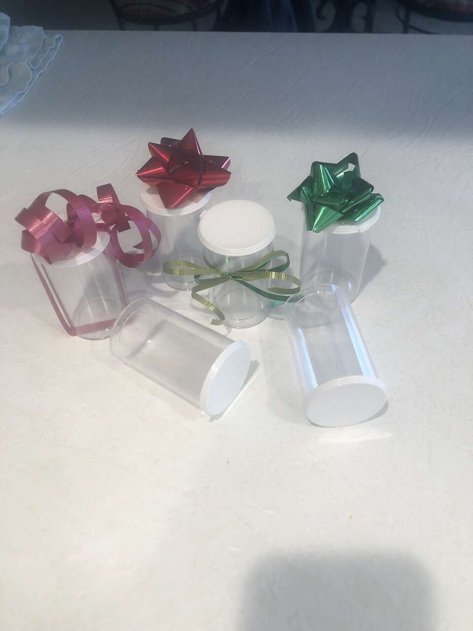 Crystal clear 5 Oz (40 dram) plastic vials with snap top lids. 2" dia x 3 1/2" tall. Hundreds of uses. Attention crafters, teachers, flea marketers!!! Your imagination is only limitation!!! No labels required! See through containers! Case of 240 vials, $50 cash or check.( 3 cases available)