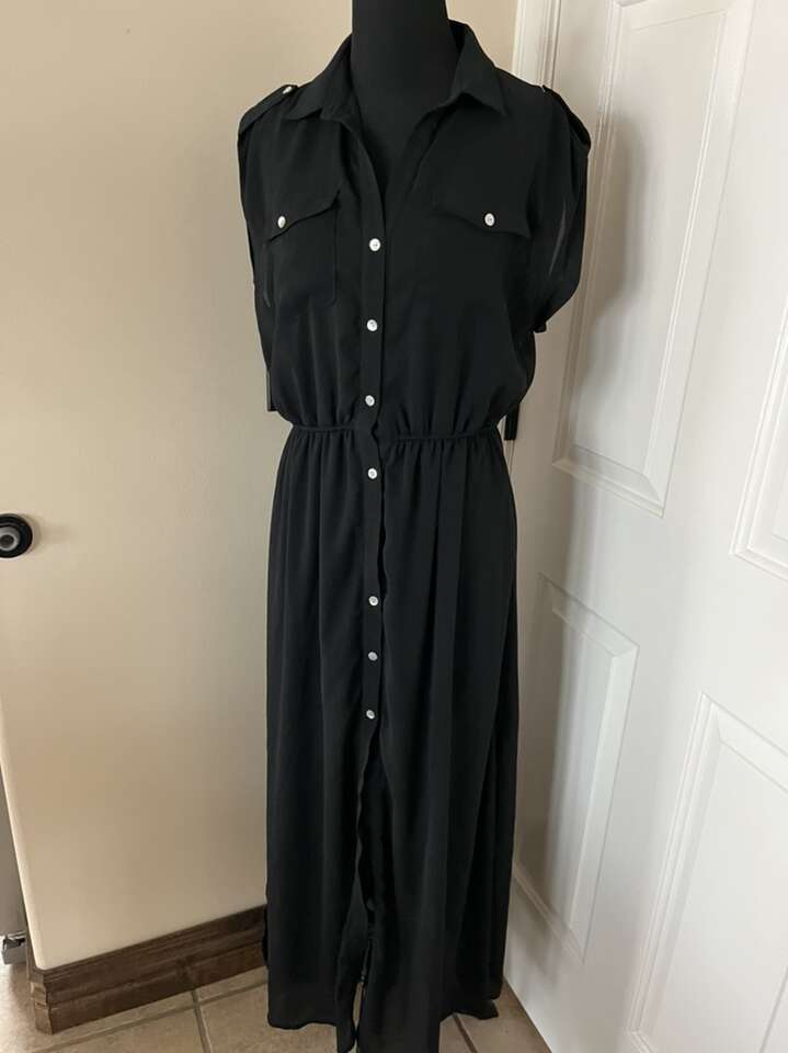 Cute black button down dress Xtaren size M it is missing one button