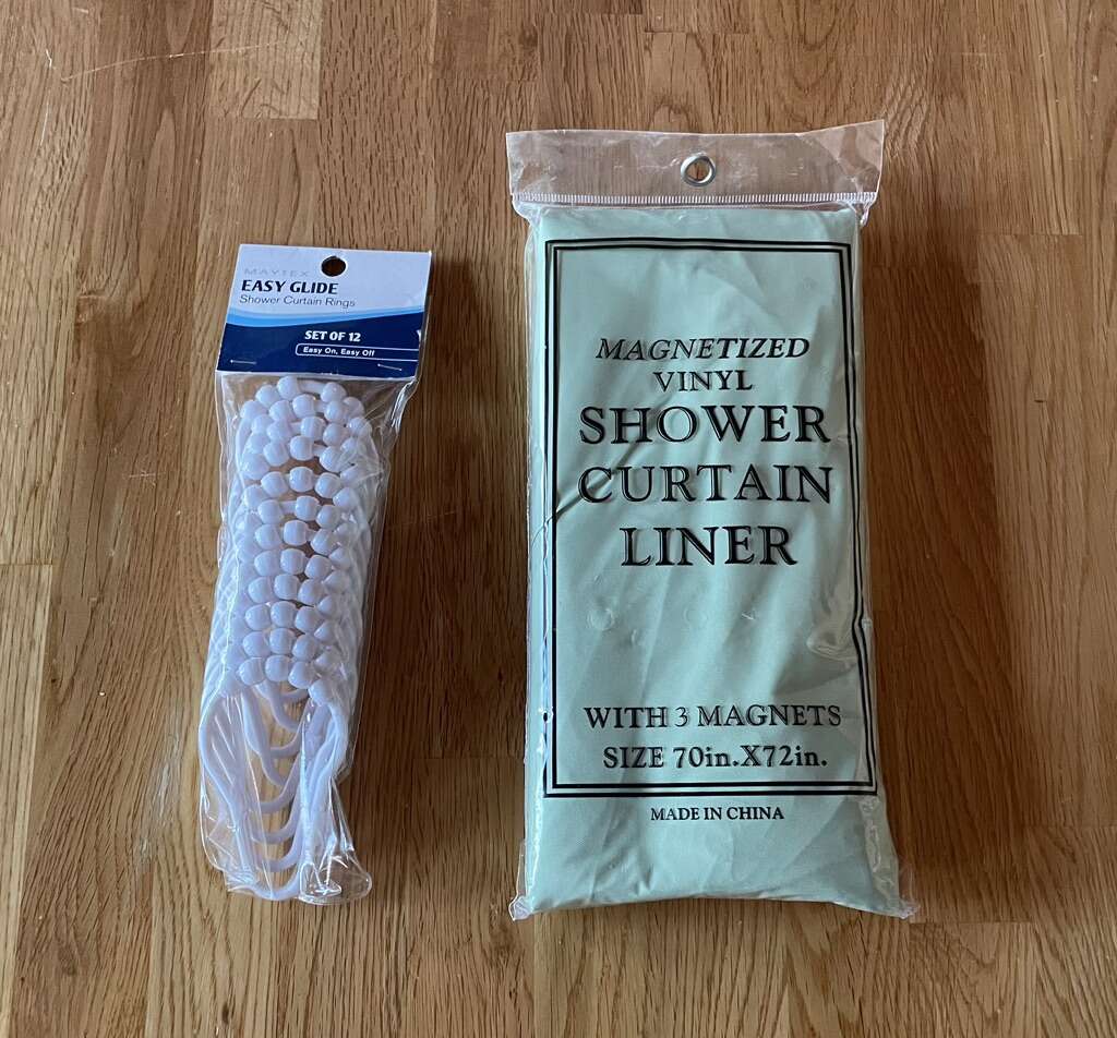 VenmoSet of 3 bathroom items: new magnetized vinyl shower curtain liner (70” X 72”) set of white 12 new curtain rings and a white metal/wire and mesh tray/basket/organizer. It is 2” deep x 8” wide x 18” long. $5 each or $12 for all.