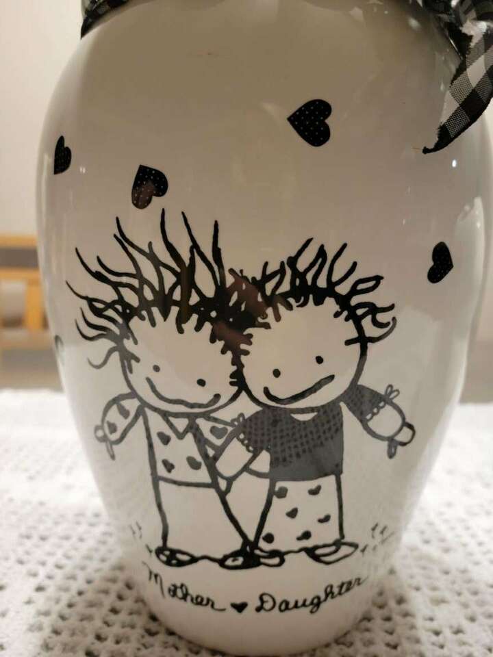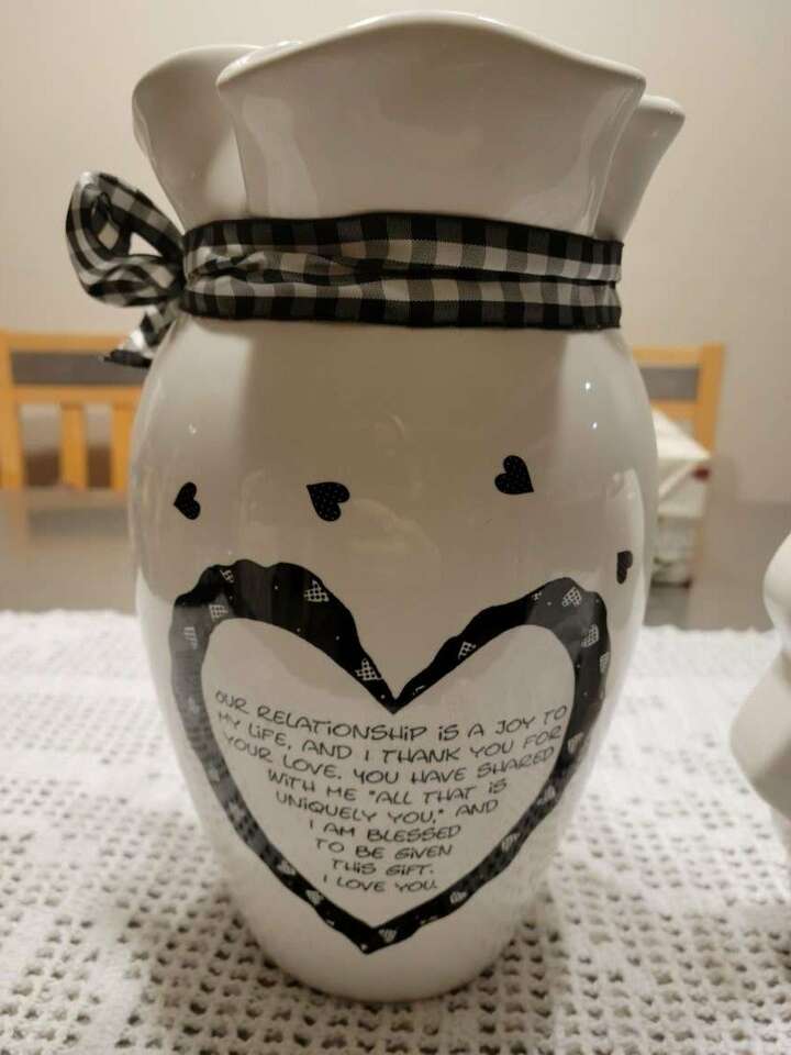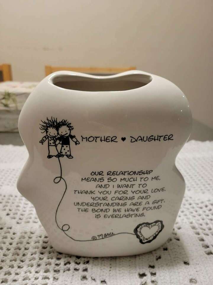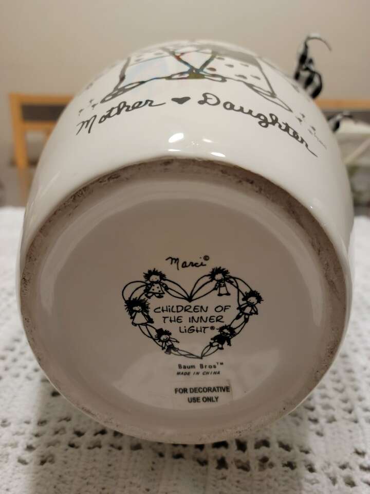Rare Find!! 2 collectible white with black vases, titled Marci ~ Children of The Inner Light by Baum Bros. 'Mother & Daughter' is a tough find from this artist. Large vase is 11" X 6". Small base is 7" X 6". Both are like new, inside & out!! Great gift from daughter to mother, or mother to daughter. Smoke free home.