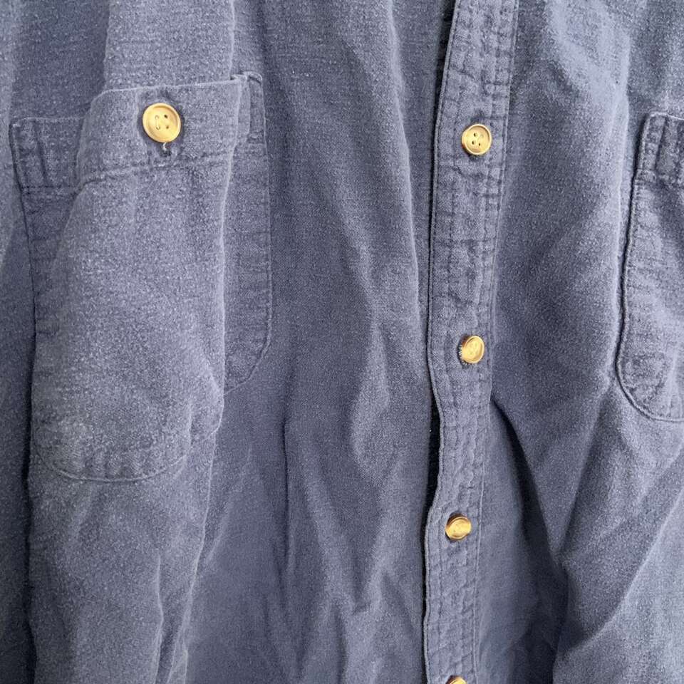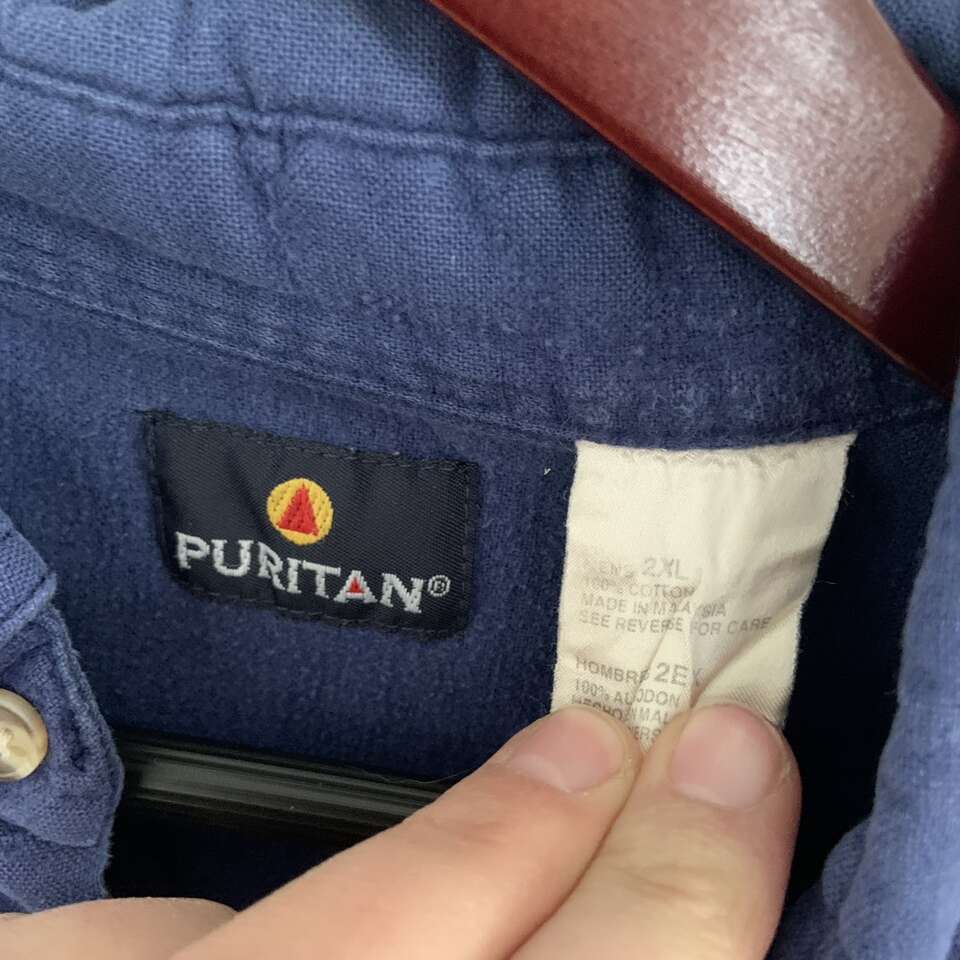 Puritan Vintage Blue Button Down Shirt Size XXL it is missing a button and does have some piling on the fabric