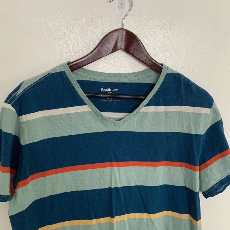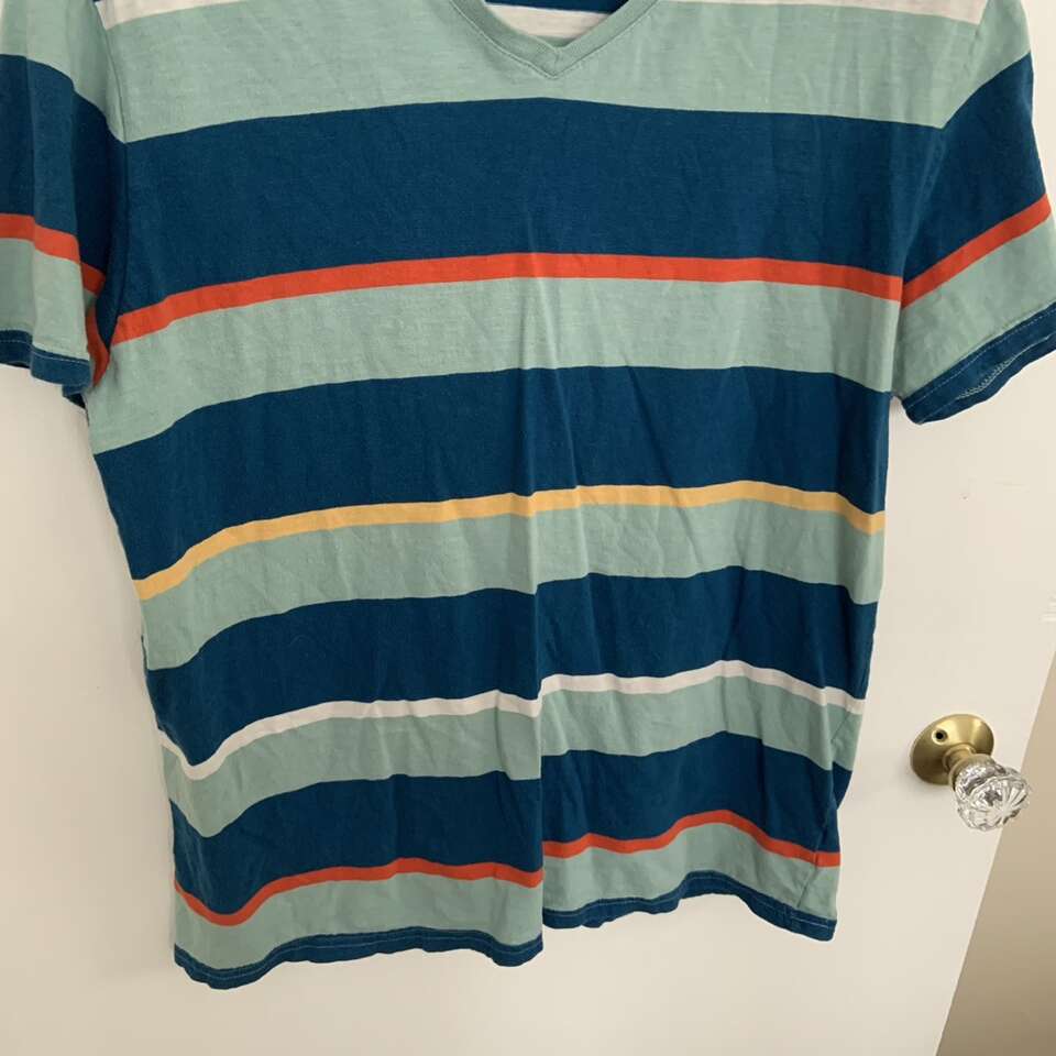 Goodfellow Striped Turquoise Orange Blue T Shirt L