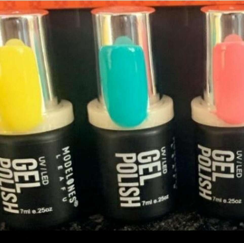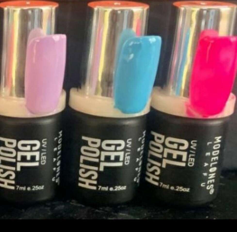 This set of Modelones 7ml gel nailpolish are all new never used. There is 6 colors 2 pinks, 2 blues, yellow and a purple as well as 1 top coat. These are in plastic bottles so they are smaller (not thick glass). During our move the box did get smashed and some base coat did get on the bottles. I did my best to get it off. These do require to be cured under a UV/LED light. All my items come from a smoke free home. Any questions please feel free to contact me.
