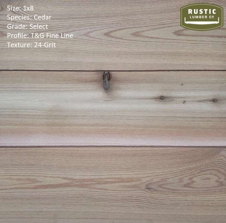 1x6 and 1x8 Cedar T&G Fineline is the material of choice for Luxury Mountain Homes and Cabins. It has a refined fineline profile with a 24-Grit sanded texture that is ideal for holding a stain. This material is only available in Select Grade (Contractor Grade) but comes in both a 1x6 and a 1x8. We also have this material in a 1x4, one side is rought and the other side is smooth.