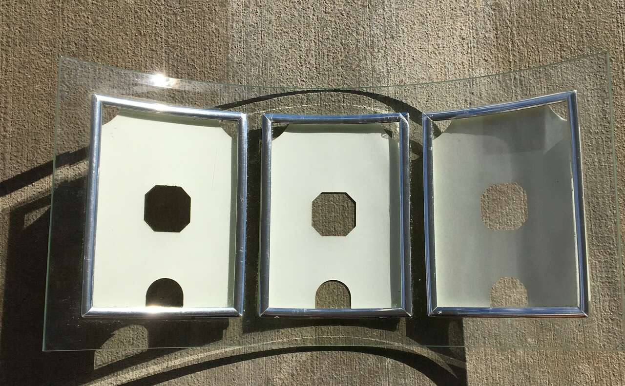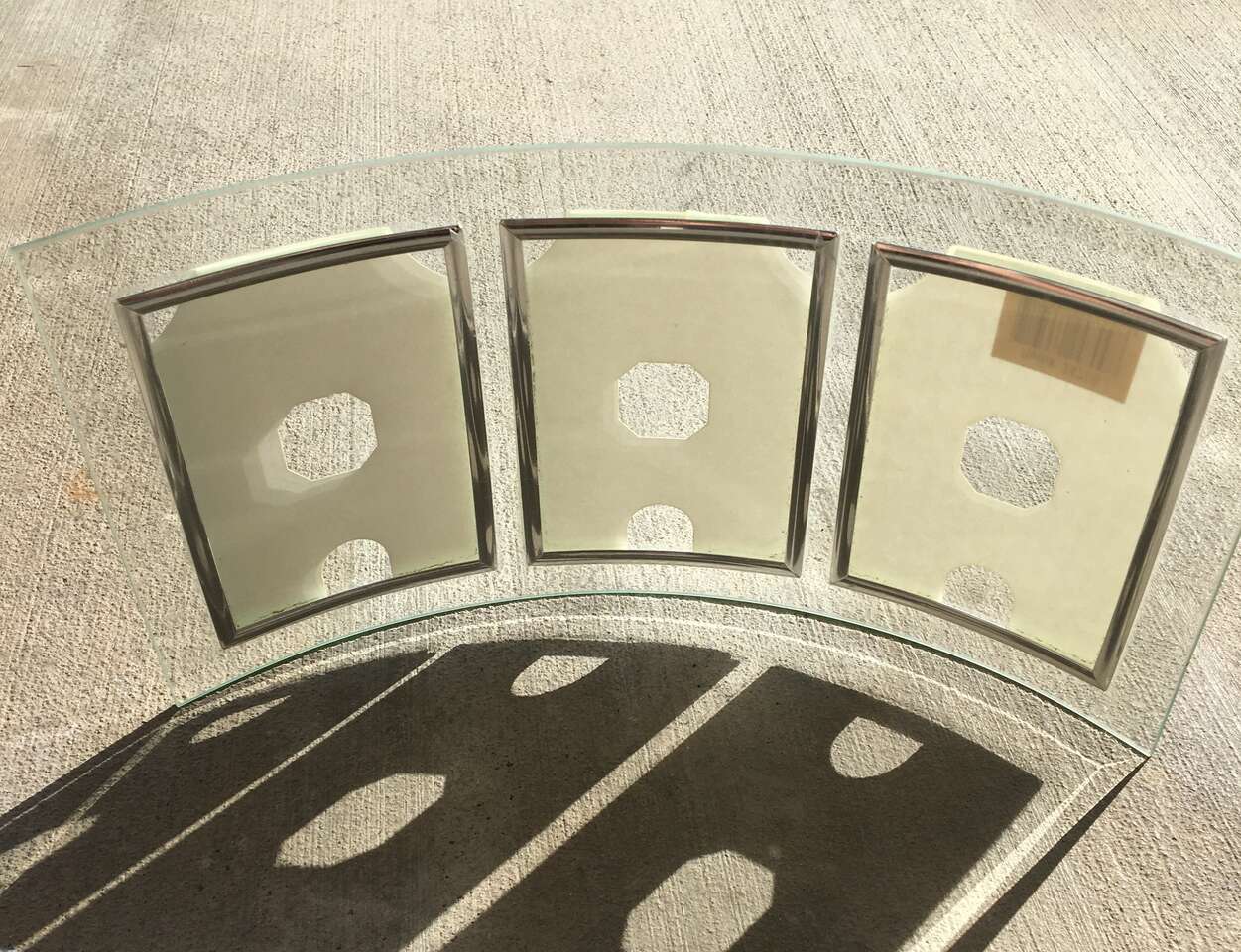 I have a Curved Glass Frame with beveled Edges and Chrome Trim for 3 - 3 1/2" x 5 " Pictures for $5 cash. This was used for a wedding and been sitting in a cupboard. It is is great shape and like new condition. It has been in a smoke/pet free home. Contact me to see.