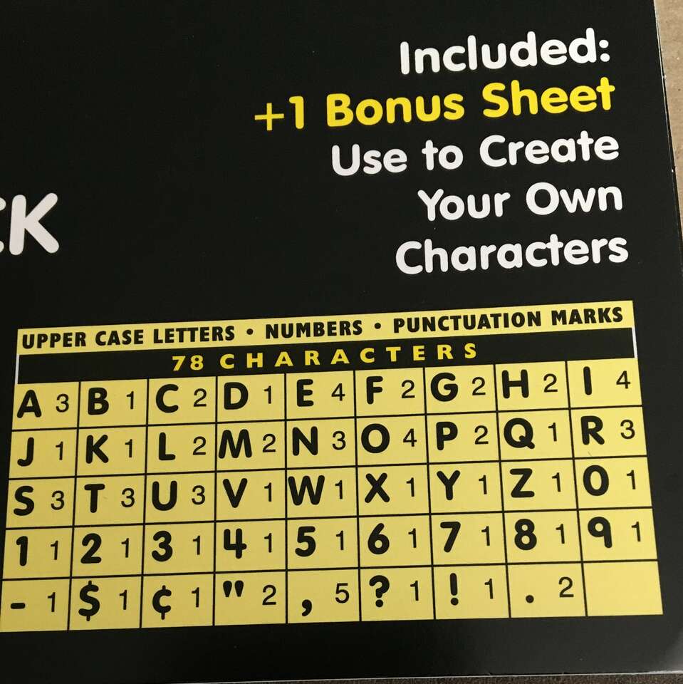 I have a Pacon Self-Adhesive Letters, 4", Black, Pack Of 78 for $4 cash. These have not been used and have been sitting in a drawer. These would be great to use on bulletin boards, signs, posters, presentation boards and more. Just peel and place — no staples, pins, glue or tape! Adheres to any clean, dry surface that is smooth or slightly textured. Even sticks to wood or a painted brick wall. Includes uppercase letters, numbers and punctuation marks. Has been in a smoke/pet free home. Contact me to see.