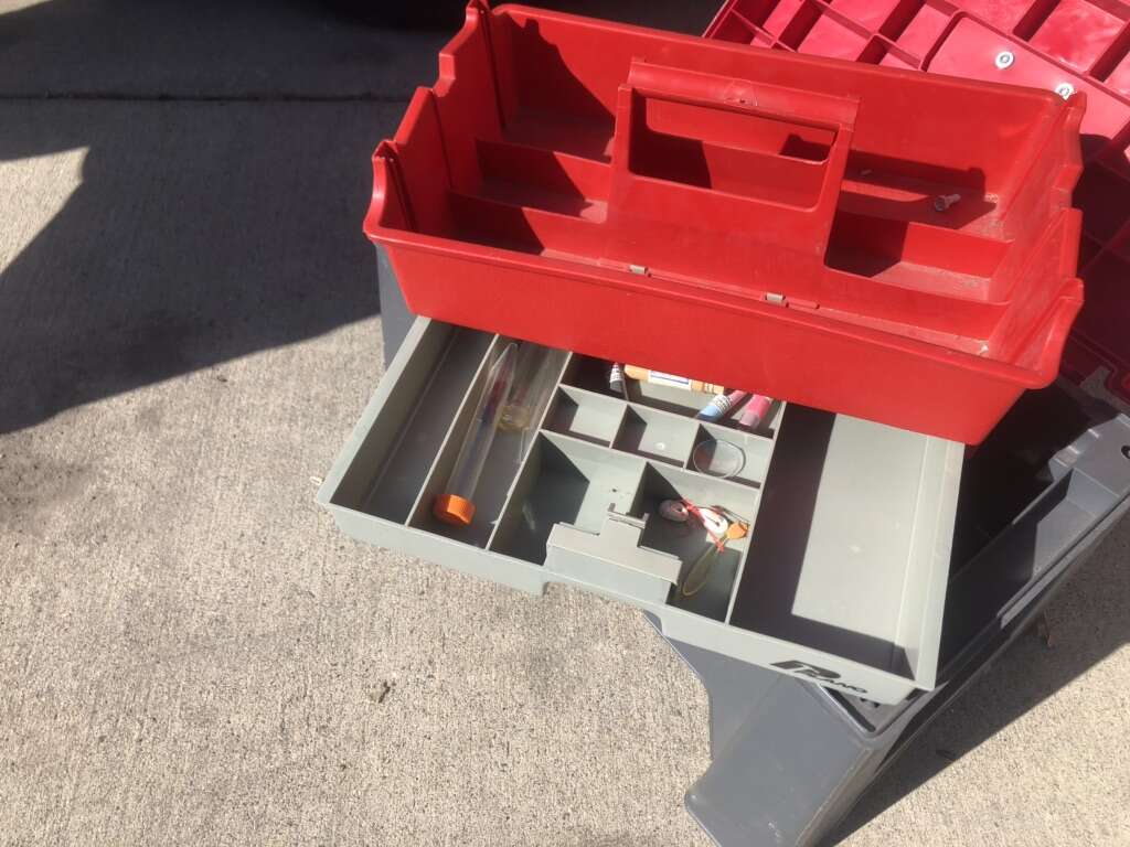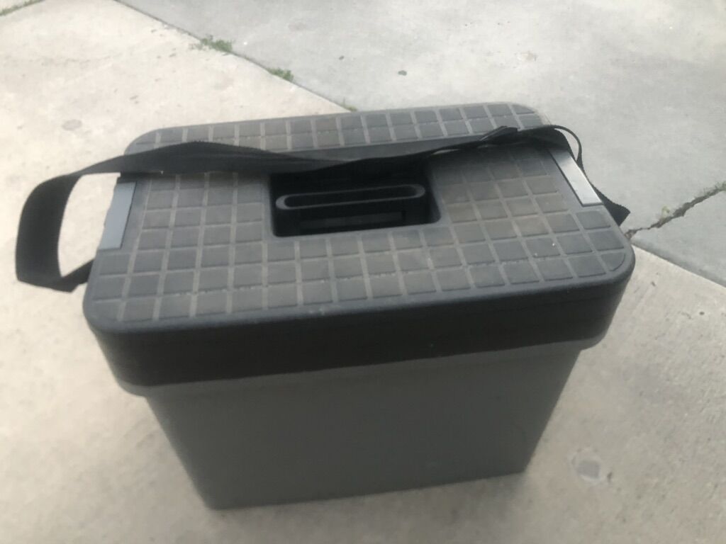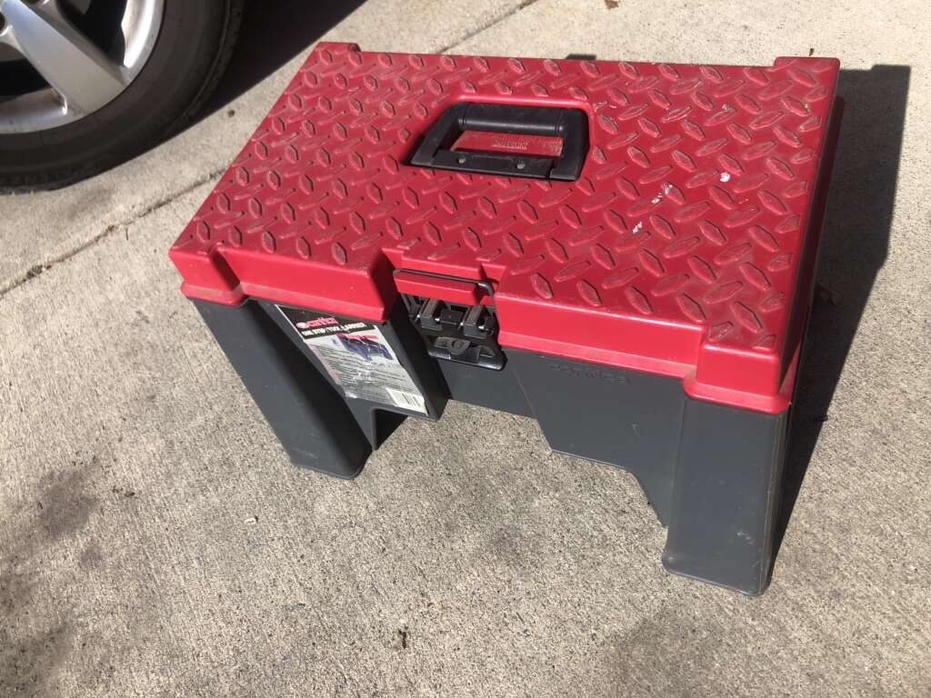 Tool box stool very useful works as a seat or a stool 19$ Grey tool box 29$