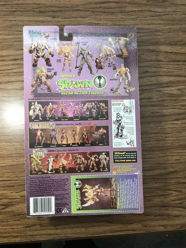 This Mc Farlane Toys Series 6 Tiffany action figure is from the Spawn line and is new on original blister and backing card. The figure has been safely stored since original purchase in 1996. Included with the figure are wings and sword turn into sled. Cash preferred or will accept Venmo to hold. Local meet up or porch pick up.