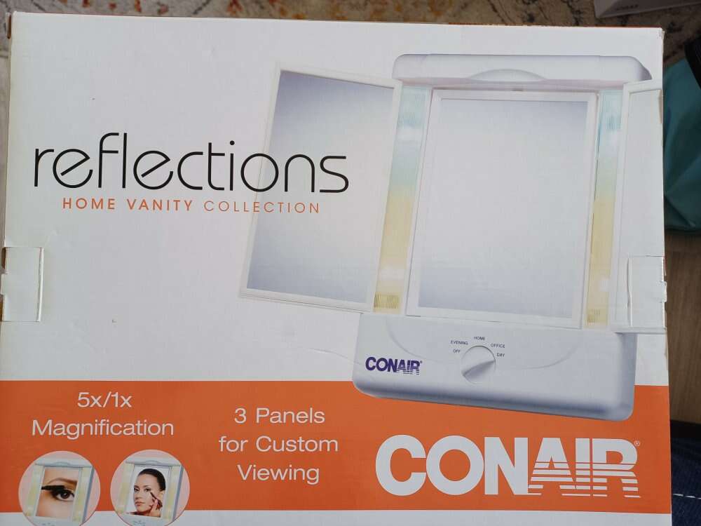 Reflections Home Vanity Collection From Conair 3 panels 4 Light Settings 5x/1x Magnification