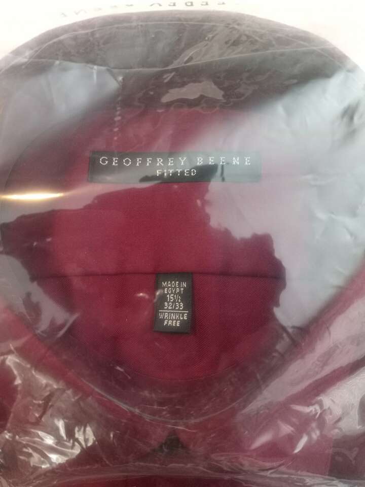 Price Reduced This is a new, in package, Geoffrey Beene fitted long sleeve shirt. It is a wrinkle free, cotton poly blend. Includes front pocket. The size is 15 1/2" neck, and a 32/33" sleeve length. It is from a smoke-free home. Cash or Venmo only.
