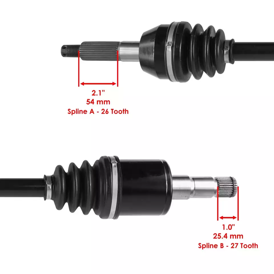 MPN: 519-KCA2230X UPC: 803467025735 **Included Hardware:**YES . Inner Diameter: Inboard: 3 1/4 (3.256 Inches); Outboard: 3 3/16 (3.197 Inches) Material: 40Cr Steel. Axle Length: 26 (26.004 Inches) Boot Material: Neoprene Polychloroprene (CR) **Inboard Spline Diameter:**3 1/4 (3.256 Inches) **Inboard Splines:**27 Teeth Outboard Spline Diameter: 3 3/16 (3.197 Inches) Outboard Splines: 26 Teeth. **Shaft Diameter:**1 (0.984 Inches) Shaft Material: 40Cr Steel. Thread Measurement: M19X1.5