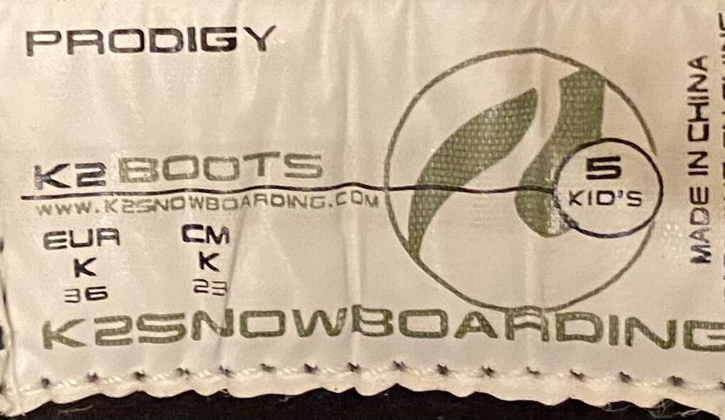 K2 prodigy kid size 5 snowboard boots for sale. Good set of boots. Need new laces. See photos. Call or text with questions. Cash or Venmo