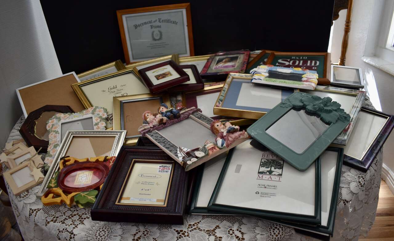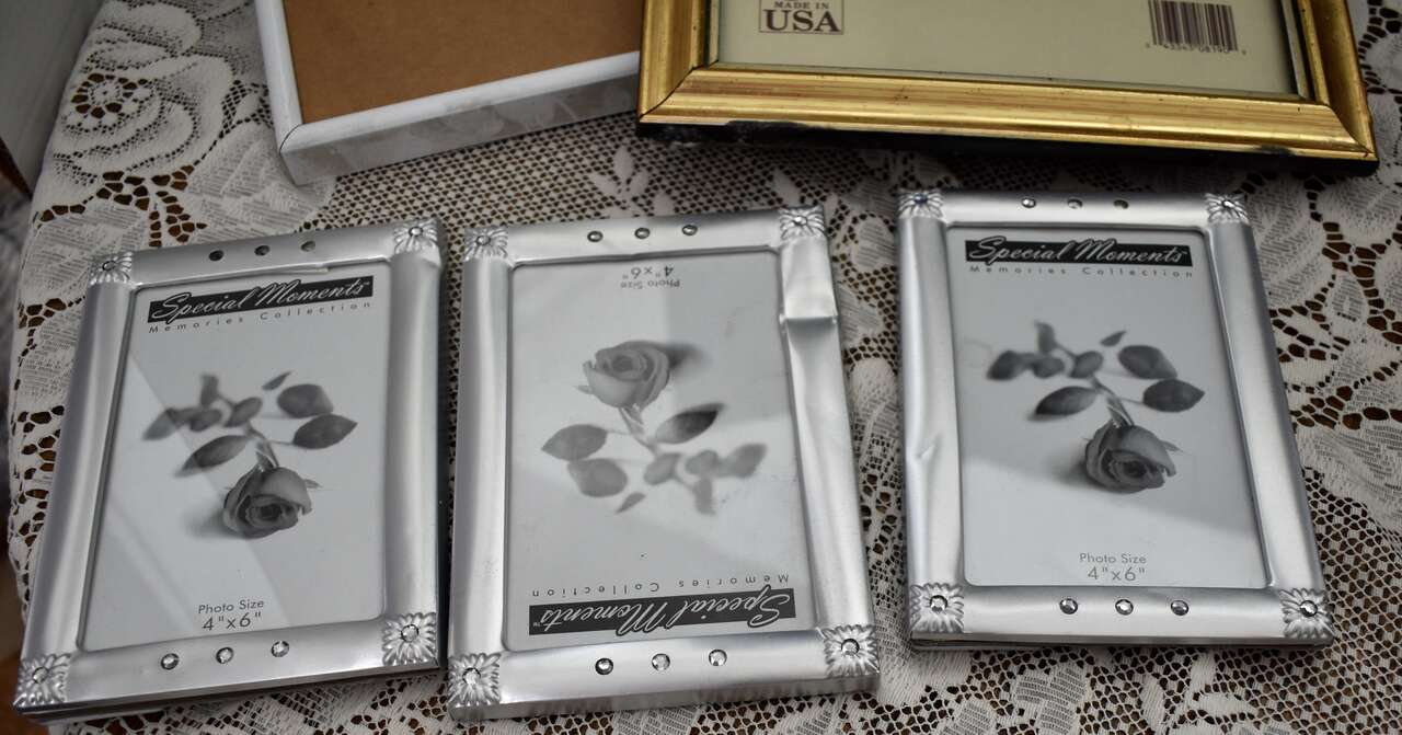 ***Please Note~-~ Most of what we have are 8 X 10's or 5 X 7's and a few that are a Little Smaller - and lots of other different sizes and shapes, also. Some have gold frames and some are wooden- as you can see in the photos. A few have never been used and some have but most of them are in very nice condition while some may have a scratch or two that could be covered with a furniture marker if wood and they could also be painted or decor added for a fun craft project.