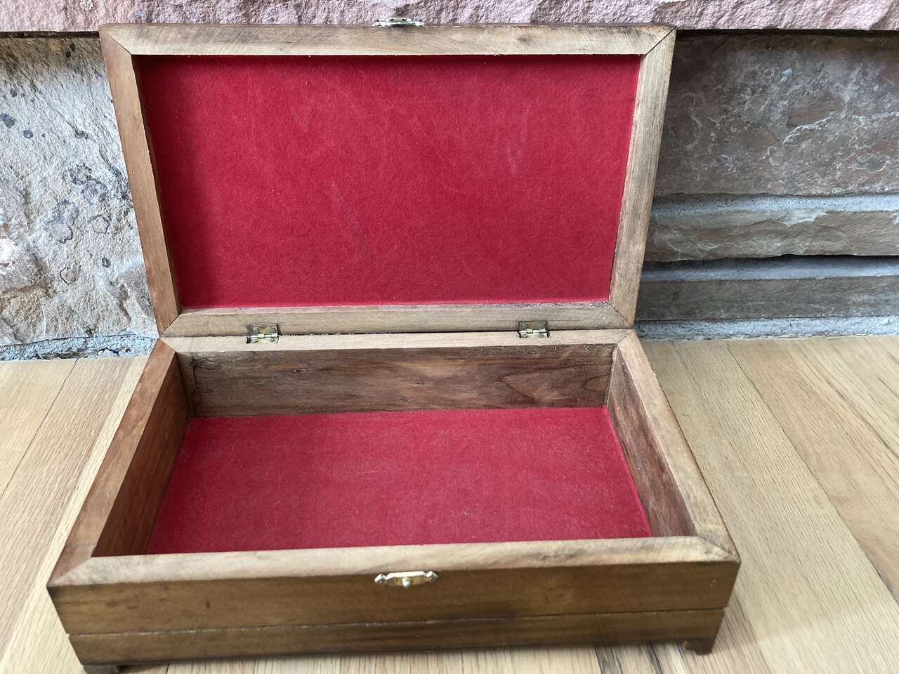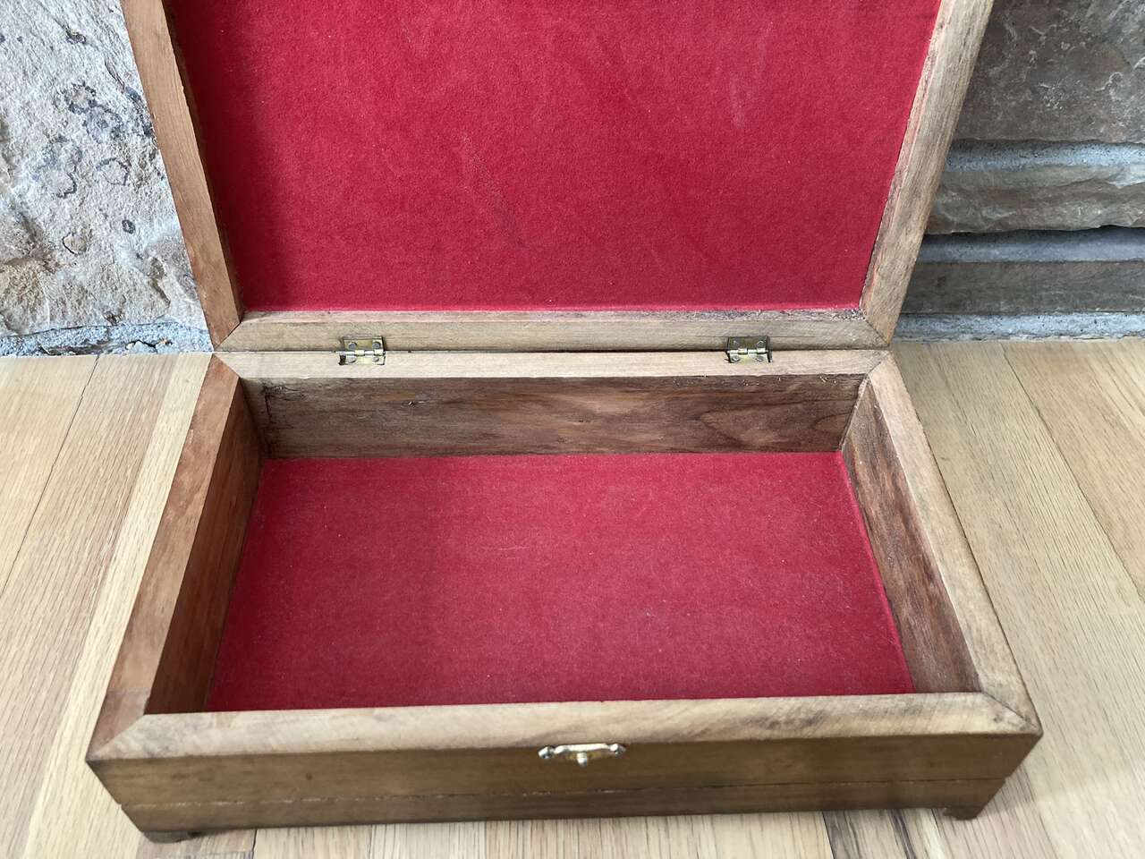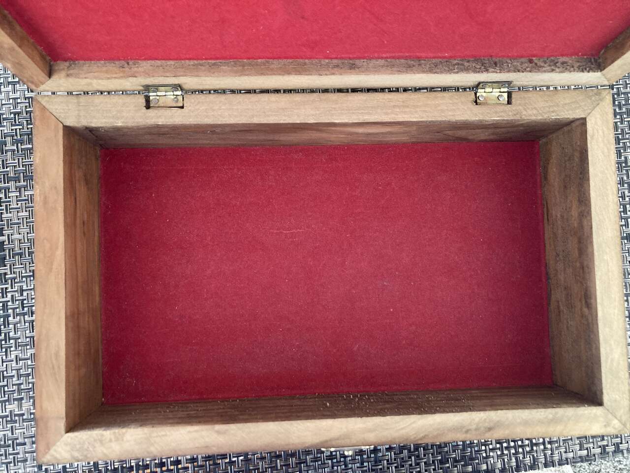 VenmoVintage flower tile carved wood jewelry trinket jewelry box, lined in red felt. This was purchased in Mexico probably in 70's or 80's. Measures approx. 10 3/4x 6.5. Please see more by seller for many vintage and collectibles from family home and our own. (lowered price from $25)