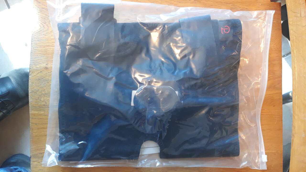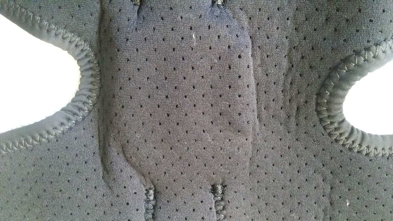 NOTE: This product does NOT have a stated size (like small, med, large, etc.). It measures about 21-23 inches at the top (edge to edge when laid flat with both detachable pieces together) & about 20-21.5 inches at the bottom. It attaches to itself with velcro & has additional straps that can be adjusted to your fit. It measures about 12 inches (vertically) top to bottom. Instructions say handwash only, so you may want an extra if you are required to wear it a lot.