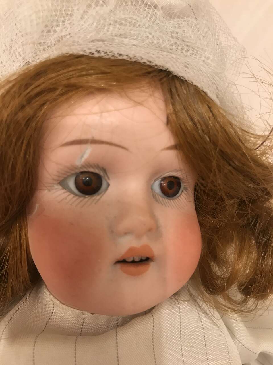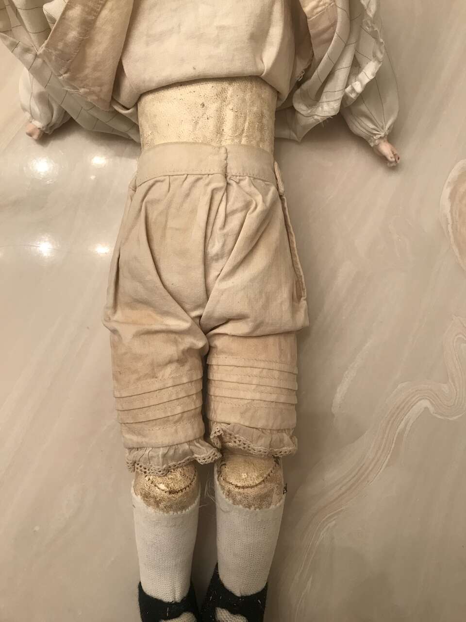 17" Bisque head doll red hair sawdust body leather teeth handmade clothes