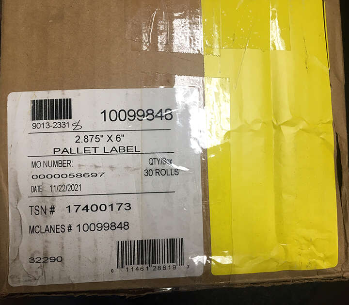 Blank yellow pallet labels. Core is 3/4" on the inside. 30 rolls in the box, all in perfect shape. $10