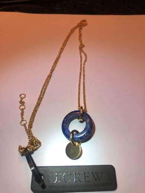 New, with original tags. Lapis measures 1 in diameter, gold chain is adjustable 26-28 in length